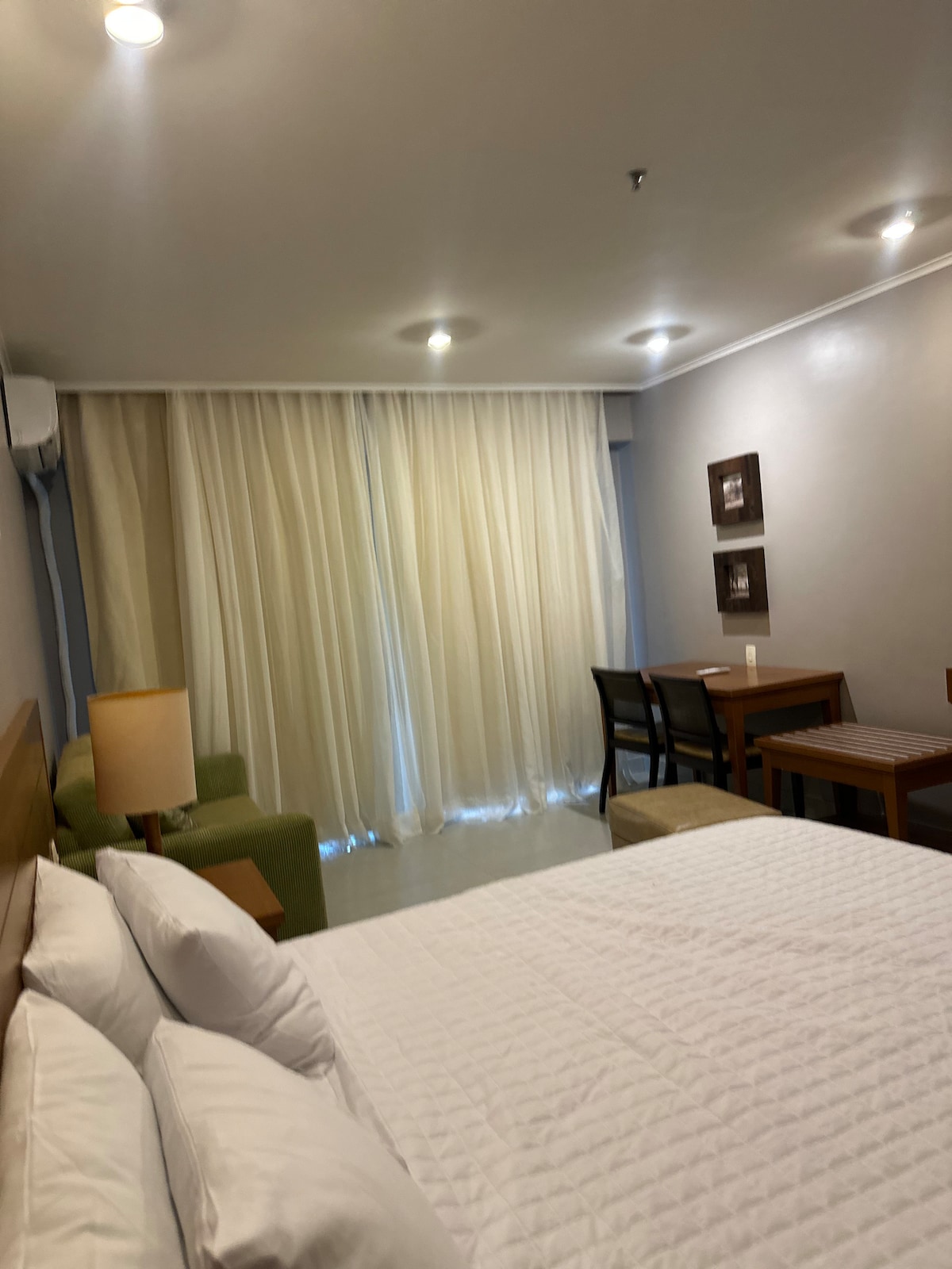 Lejlighed: Køkken med køleskab, elkomfur, gryder, sandwichmaker, køkkenredskaber, WiFi. Stue: Aircondition, bord med 4 stole. Soveværelse: dobbeltseng, 32" smart-tv med kabel-tv, aircondition og 2-dørs garderobeskab. 1 badeværelse. Altan med bord og 4 stole med udsigt over poolen og havet. Derudover har vi en speedbåd til rådighed for gæster, der kan tage direkte til Green Coast Resort. Billeder af den vedhæftede speedbåd er tilgængelige.