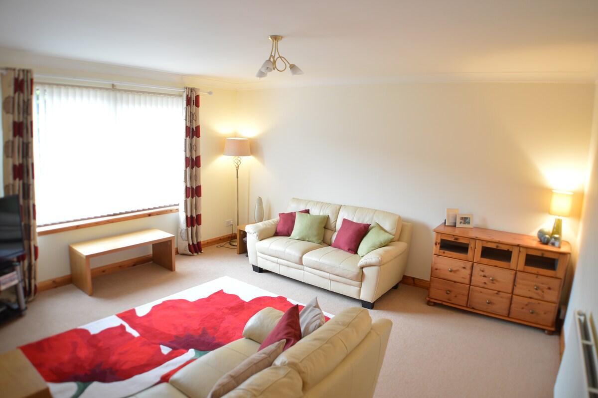 To-værelseslejlighed i Dundee med gratis parkering 5 km fra byens centrum. Du har lejligheden for dig selv. Smuk og fuldt møbleret. Køkken med vaskemaskine, tørretumbler, køleskab, komfur, kedel, brødrister, kaffemaskine. Stue med tv og sovesofa. Soveværelse et med kingsize-seng og soveværelse to med dobbeltseng og indbygget garderobe, rent sengetøj og håndklæder, internetforbindelse, central gasvarme, tæt på alle lokale butikker. Dejligt og roligt område med stille naboer.