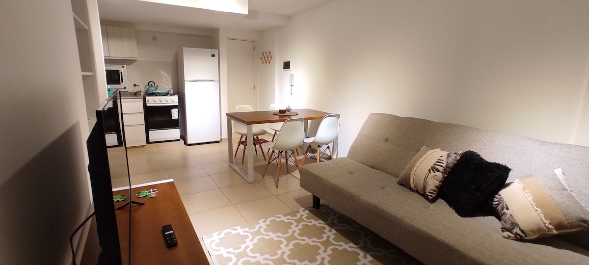 Sofistikeret, moderne lejlighed, der for nylig er blevet taget i brug. Meget rummelig og lys, med en smuk balkon under åben himmel, hvor du kan tilbringe unikke øjeblikke udendørs. Uovertruffen beliggenhed i hjertet af Nueva Córdoba (Independencia og Crisol). Tæt på de vigtigste indkøbscentre, sanatorier, UNC, gastronomiske områder og attraktioner i Cordobas natteliv. Fuld udstyr: 43 tommer tv, wifi, aircondition, køleskab, fryser, mikrobølgeovn, el-kedel. Nem adgang til de vigtigste transportmidler!