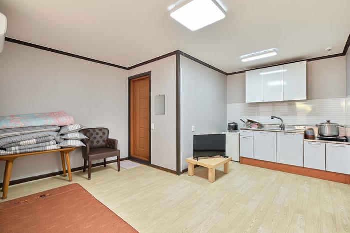 Hej, vi er Onda, der forsker og tilbyder forskellige hvileområder. Jeg håber, at alle, der vil bo her, får en behagelig og glad tid. [Indkvarteringsindledning] Dette er et par spa-pension, Milky Blue, der ligger i Cheongpodae Beach. Der er individuelle griller i alle rum, og der er en gasgrill. Reservationer af mere end et værelse er ikke muligt for din gruppe. [Værelsestype] Etværelses type (1 queensize-dobbeltseng + køkken + 1 badeværelse)