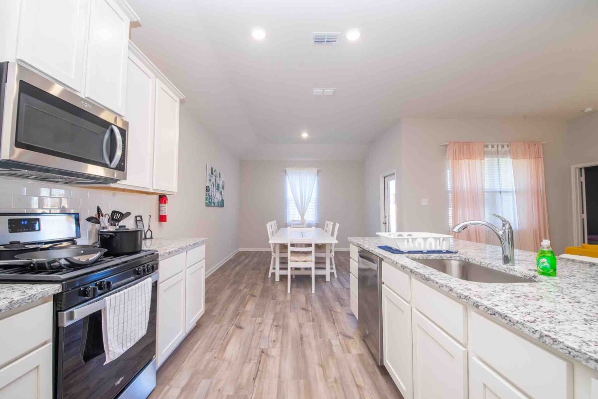 Velkommen til Texas Prairie Cottage. Slap af på landet med spil, grill, og s'mores! Masser af plads til at sprede sig på vores 1,3 hektar store ejendom. Spil spil, fodbold outback, se film, eller nyd solopgangen og solnedgangen fra den store veranda eller baggårdens bålplads. Hvis du føler dig eventyrlysten, kan du besøge fårene, gederne og æslet. Plads til 6-8 gæster i vores 3 soveværelser, 2 badeværelser. Du vil ikke glemme dit ophold på prærien.