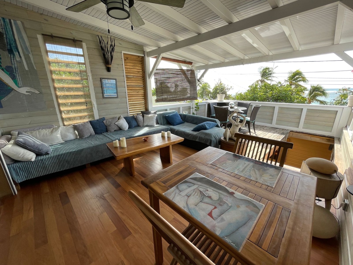 Vue mer panoramique sur la mer des Caraïbes, studio "Coup de cœur Airbnb" – idéal en solo ou à deux ! À seulement 4 minutes à pied de la plage privée de l’Anse des Rochers, ce studio climatisé de 25 m² avec terrasse extérieure vous offre une vue mer à 180°, idéale pour se détendre, télétravailler ou partager un moment à deux.