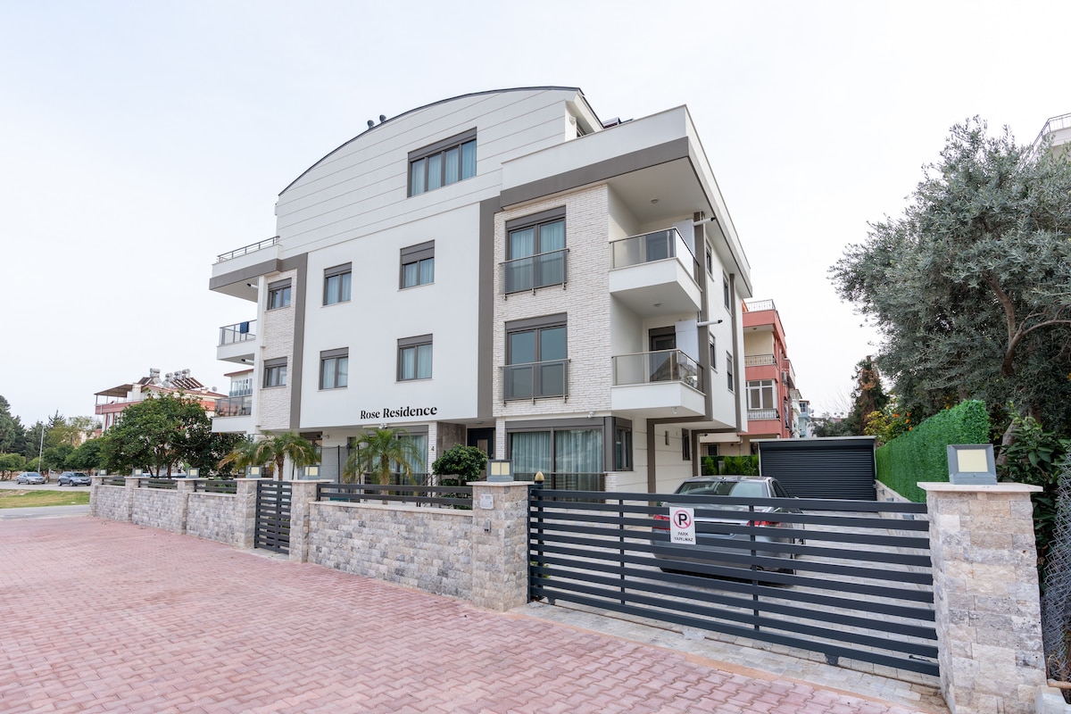 Welcome to Rose Residence, your delightful Antalya getaway! Immerse yourself in our beautiful, brand-new apartment, just steps from the beach, charming shops, and restaurants. Experience modern, spacious design, bathed in natural light, creating a bright and elegant ambiance. Equipped for your needs, our kitchen invites culinary adventures. Relax in cozy living spaces, perfect for sharing laughter. Walk to breathtaking Konyaalti beach for sun and sand. Find serenity in well-appointed bedrooms.
