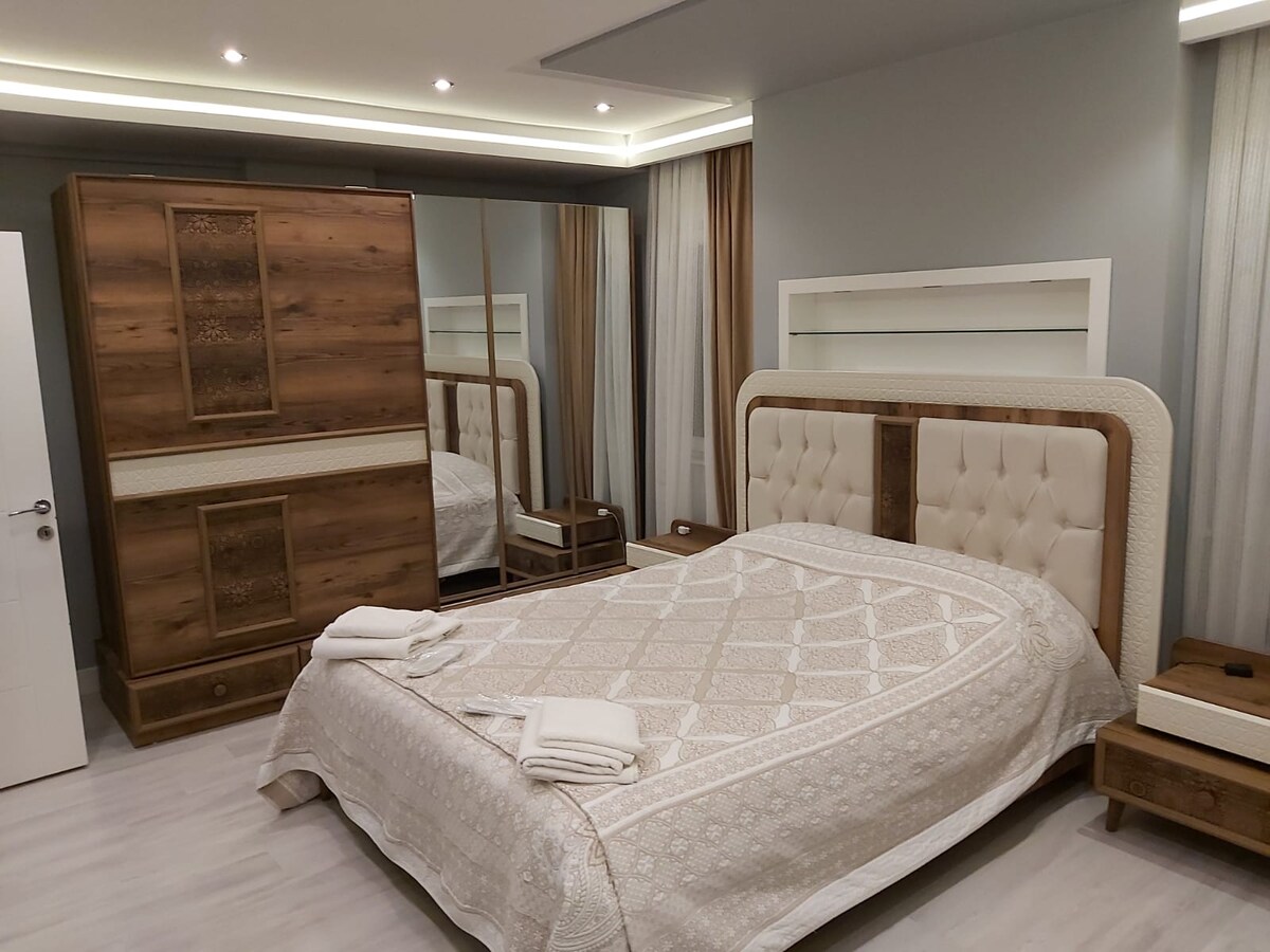 Lejlighed i byens centrum, moderne hyggelig, luksus, 140 m2 med alle bekvemmeligheder og udstyr. Inden for slottet, med udsigt over havet og Taurusbjergene, 3 minutter til slottet, 10 minutter til marinaen, 10 minutter til Mermerli-stranden. Der er en sporvogns- og busstation i nærheden. 100 meter til Hadrians port, som er indgangen til slottets inderside. 50 meter til nostalgisk sporvognsstoppested. 400 meter fra metrostationen til lufthavnen.