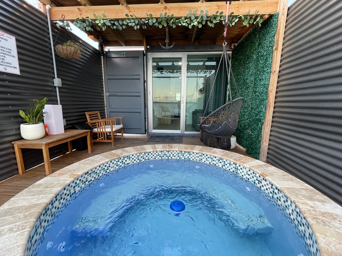 KUN FOR VOKSNE! Eksklusivt for VOKSNE og specielt designet til par. Med direkte adgang til en HELT PRIVAT OPVARMET POOL, udendørs bruser, pooludsigt fra sengen og udendørs natbiograf. Et unikt rum i en halv container (indvendigt rum på ca. 160 kvadratfod). BEMÆRK: Af hensyn til sundhed, sikkerhed og privatliv er der kun adgang til maks. to voksne. Ikke mere end to voksne, ingen mindreårige/ mindreårige, ingen besøg og ingen kæledyr vil blive optaget.