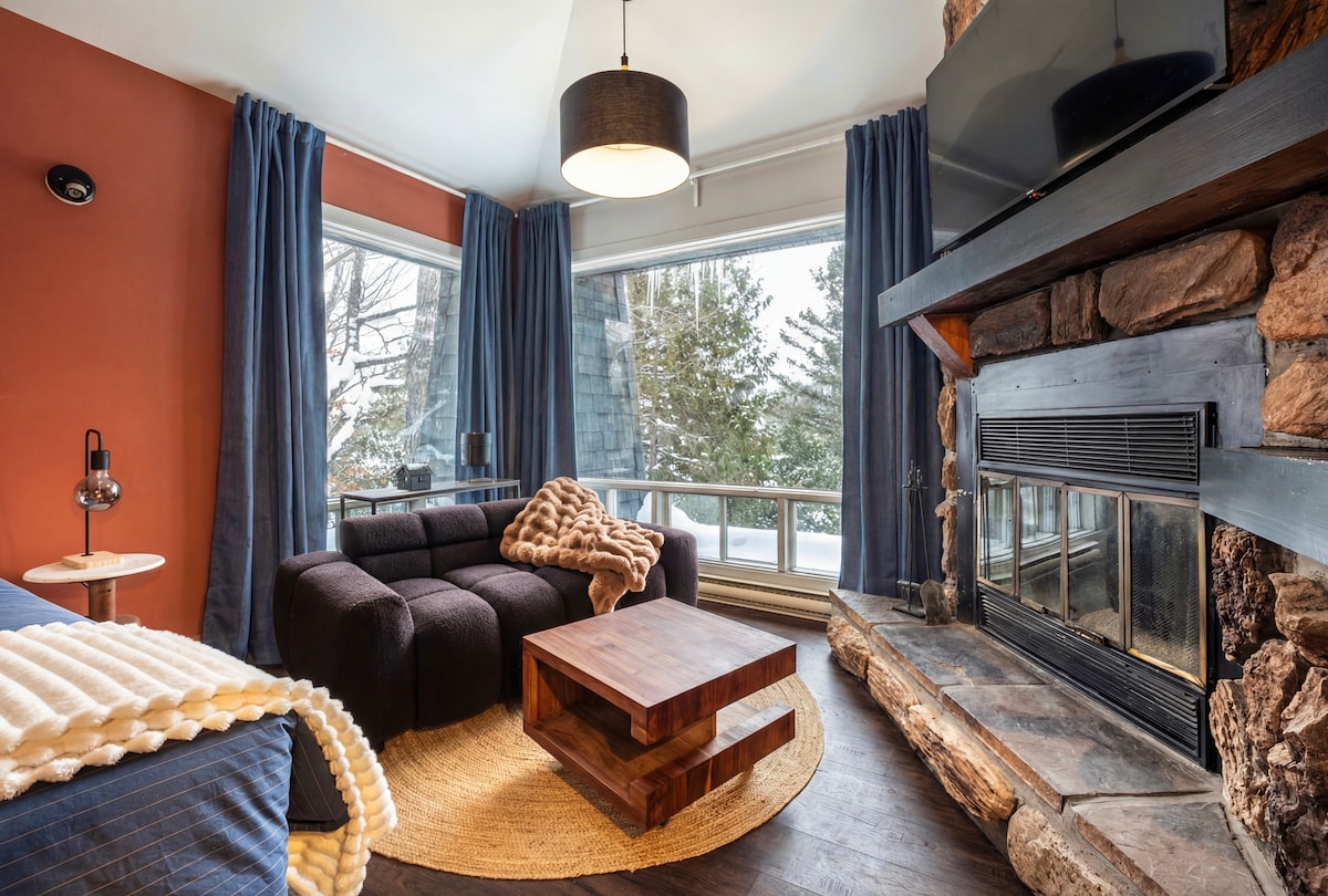 POOL og BOBELBAD lukket indtil juni 2026 Velkommen til Le Treehouse, en smuk loftslejlighed på øverste etage med mezzaninudlejning beliggende i hjertet af Mont-Tremblant Old Village. - 5 minutters kørsel fra skisportsstedet Mont-Tremblant - Gratis busstoppested i nærheden - Gratis parkering/wi-fi - Netflix/perm-video (eget abonnement er påkrævet) - Privat balkon med spisebord - Fælles vaskeri i kælderen ($)
