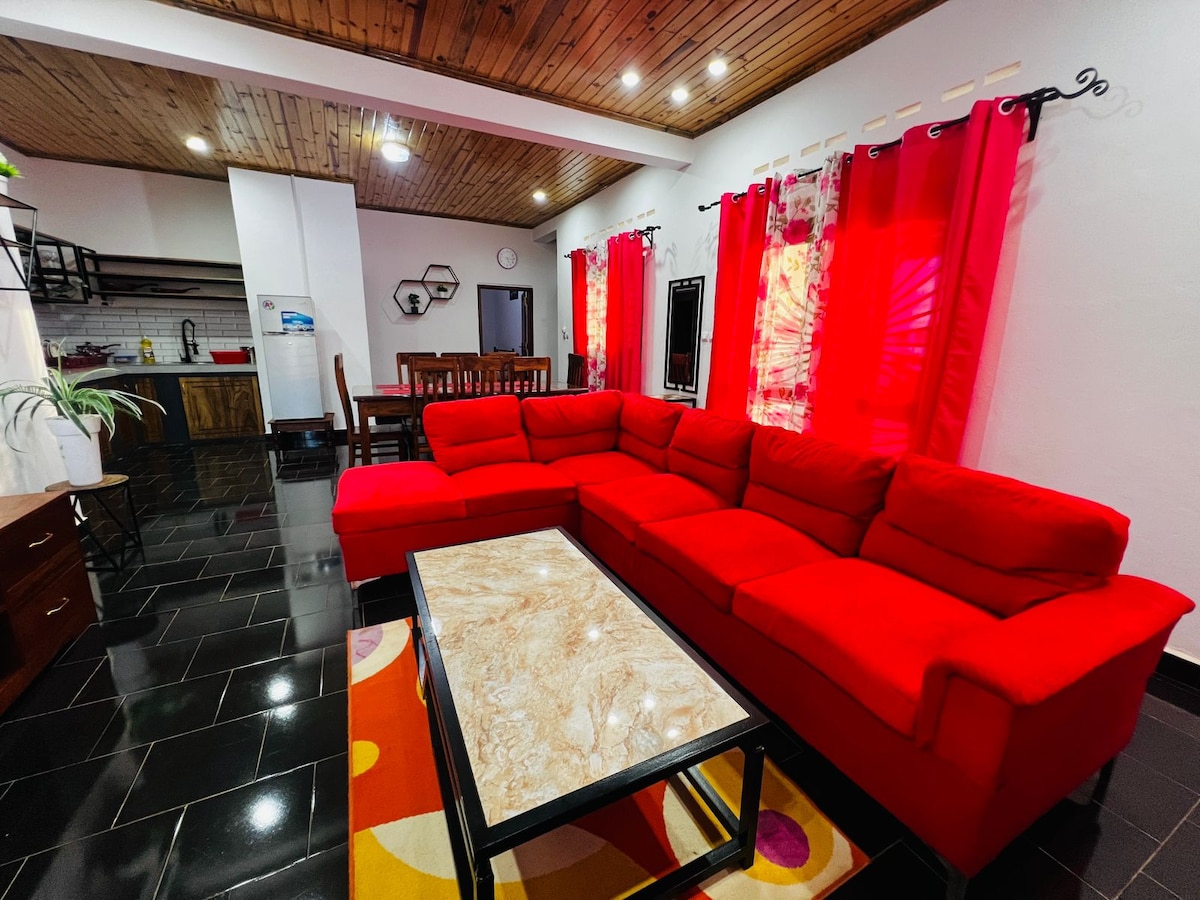 Oplev en charmerende villa med pool, der ligger i det sikre beboelsesområde Scama, BTM by. Den har tre dobbeltværelser, der alle har aircondition og er udstyret med et privat badeværelse med bruser, der tilbyder komfort og privatliv til alle gæster. En barneseng er også tilgængelig efter anmodning uden ekstra omkostninger. Du vil også nyde et fuldt udstyret køkken, en stor stue og en rummelig spisestue.