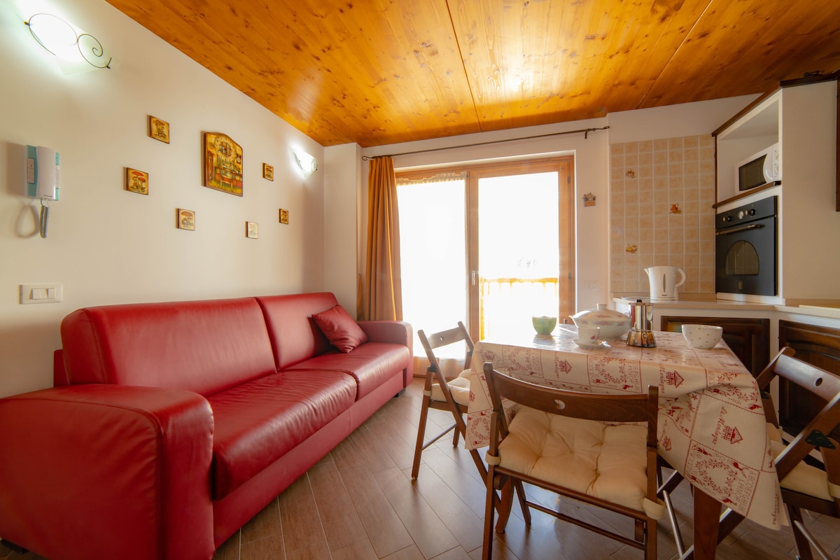 Hej, vi er Stefania og Dario. Vi besluttede at leje vores bjerghus ved at forestille os at gøre det, vi gerne vil finde til rådighed for vores gæster, når vi skal på ferie for vores gæster. Dette er et rummeligt studie beliggende i et smukt nybygget feriested, der er udstyret med en swimmingpool, spa, solarium og mange andre tjenester. Lejligheden er blevet gennemtænkt indrettet i alle detaljer for at sikre et sikkert og komfortabelt sted til op til tre personer.
