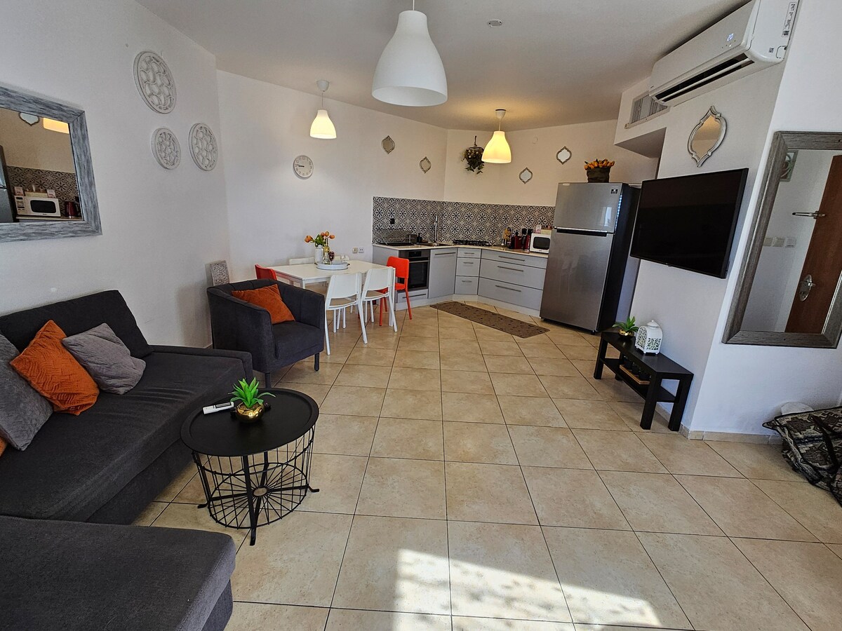 Fantastisk 2,5-værelses lejlighed (nichesoveværelse uden for soveværelse og stue. Der er 2 altaner til lejligheden fra stuen og soveværelset. Højdepunktet i denne lejlighed er den fascinerende udsigt over Eilat-bugten. Du vil nyde panoramaudsigten, der vil gøre dig gabende. Lejligheden ligger i et nyt kompleks kaldet Sea Side, der ligger kun 100 meter fra stranden, indkøbscenteret og strandpromenaden. Tilbyder nem adgang til det smukke hav. Dette er et perfekt valg til en afslappende og sjov strandferie som familie.