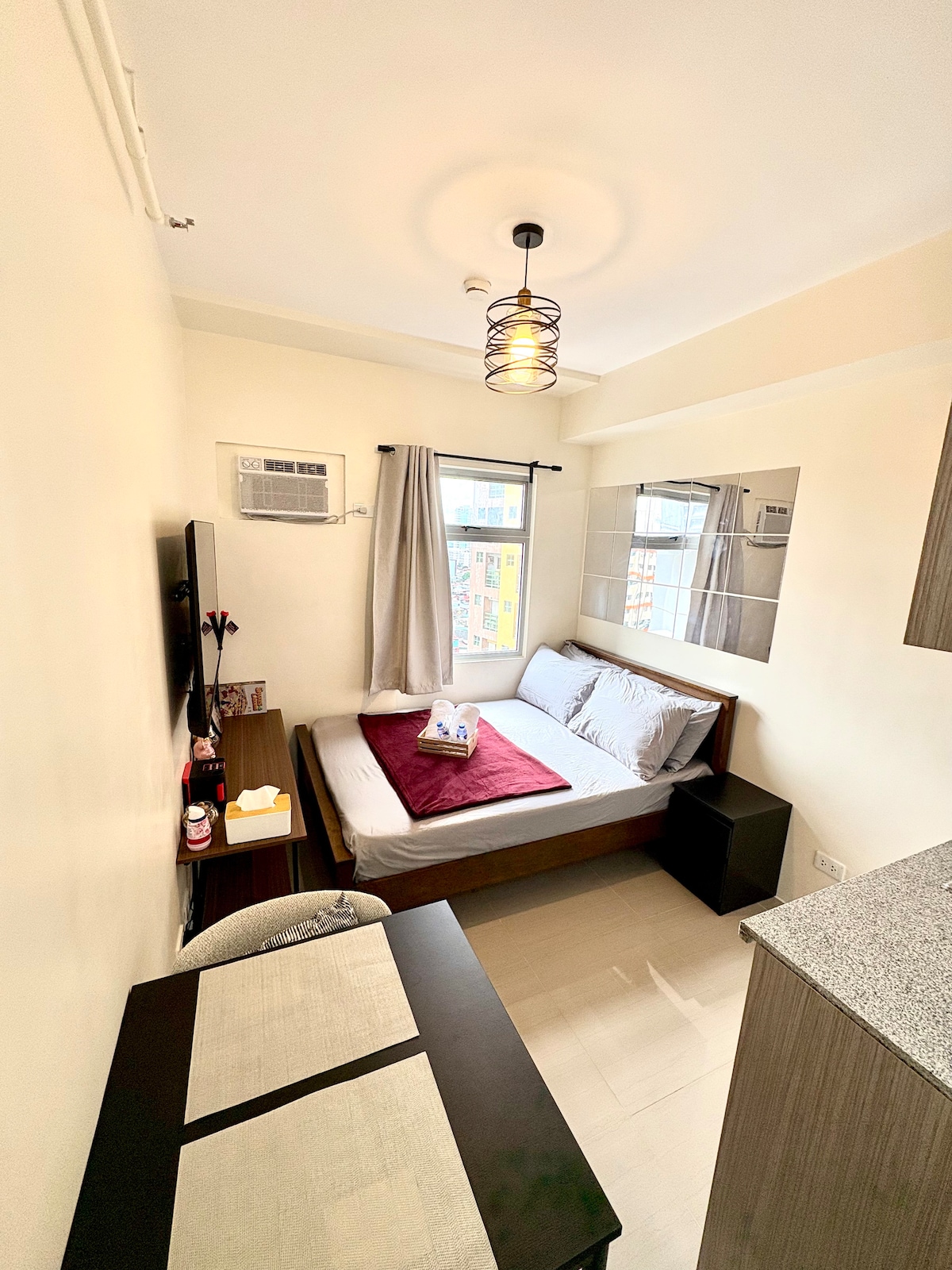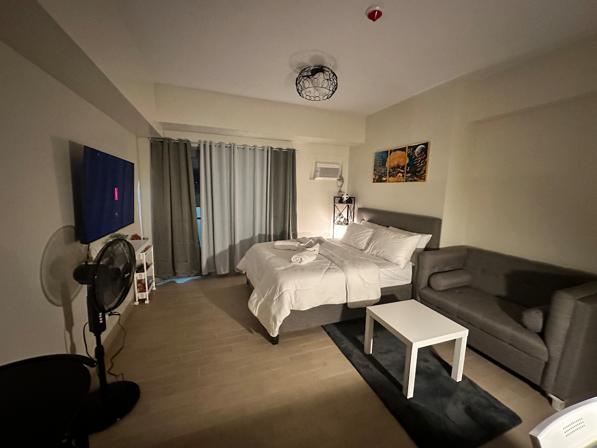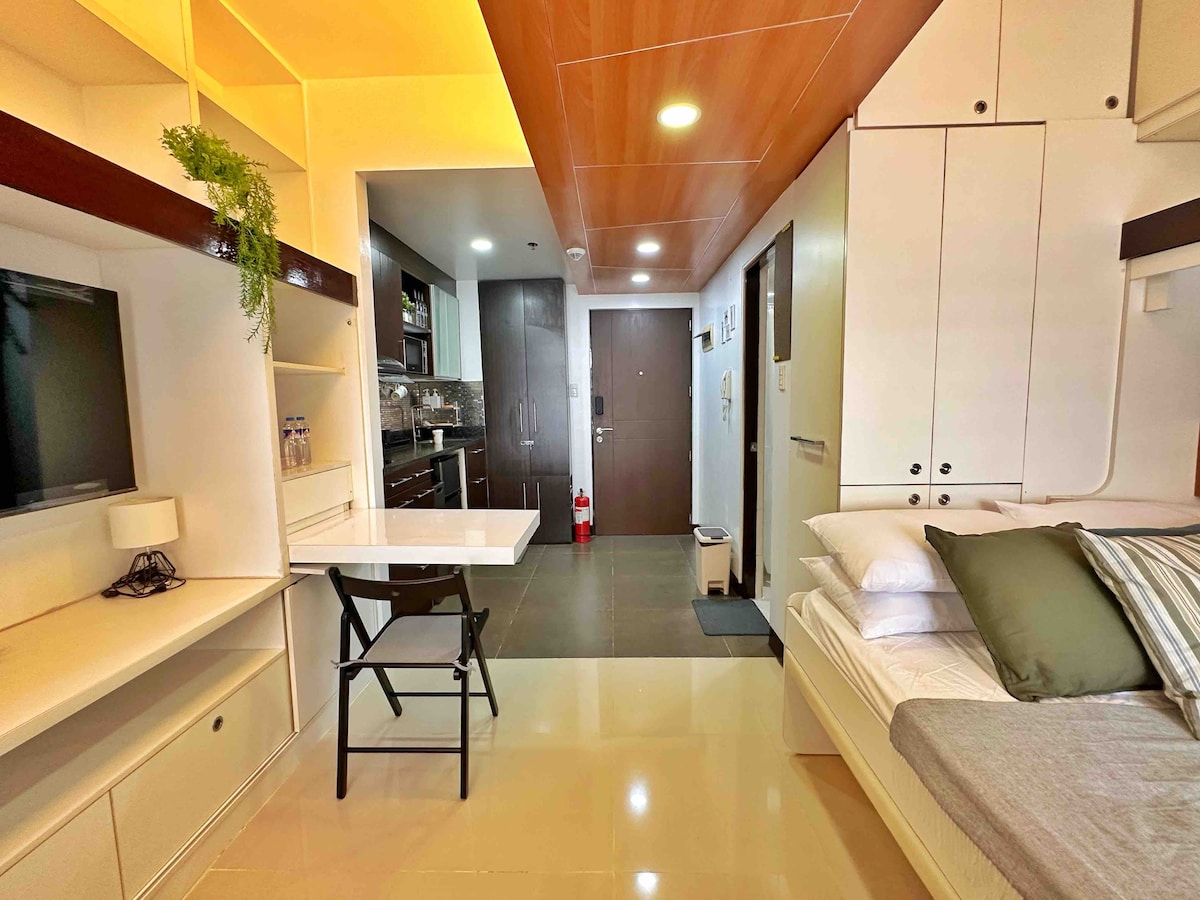 Dette er dit hjem i en travl by! Beliggende i det travle Araneta Center i Cubao, oplev hotellevet i den elegant designede og maleriske enhed. Wi-fi og Netflix med de komfortable sæder, et smukt langt spisebord og queensize-sengen vil helt sikkert få dig til at ville blive indendørs hele dagen.