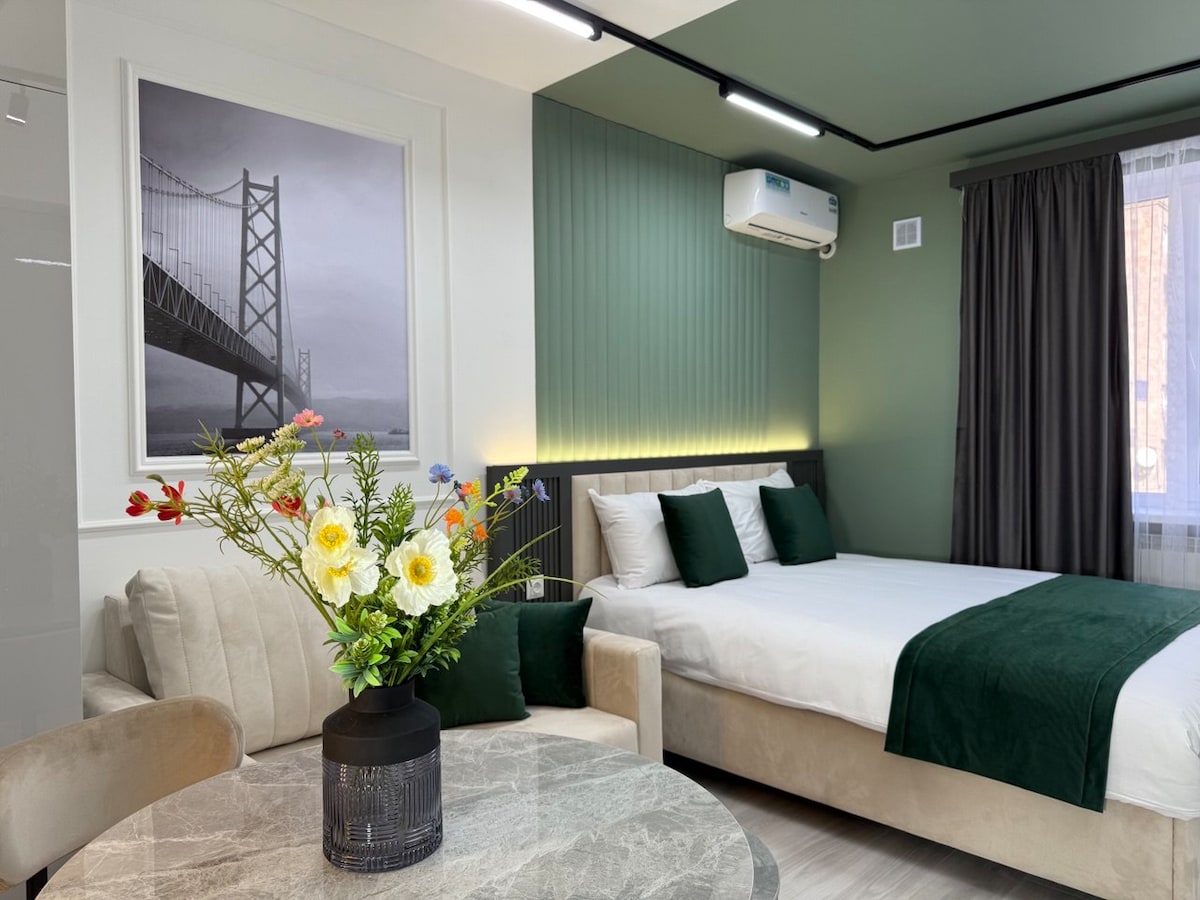 Nyrenoveret studiolejlighed, der ligger 1,6 km fra Republikpladsen. Der er en ny bygning i et sikkert nabolag på øverste etage (ingen elevator). Lejligheden er på 46 kvm, lys og indbydende. Der er en komfortabel stor queensize-seng, et dejligt køkken og masser af garderobeplads. En 24 timers indtjekning uden vært er tilgængelig, højhastigheds-wi-fi (200 MB) og alt det, der vil gøre dit ophold behageligt. Vi har også en vidunderlig udsigt over Mount Ararat!