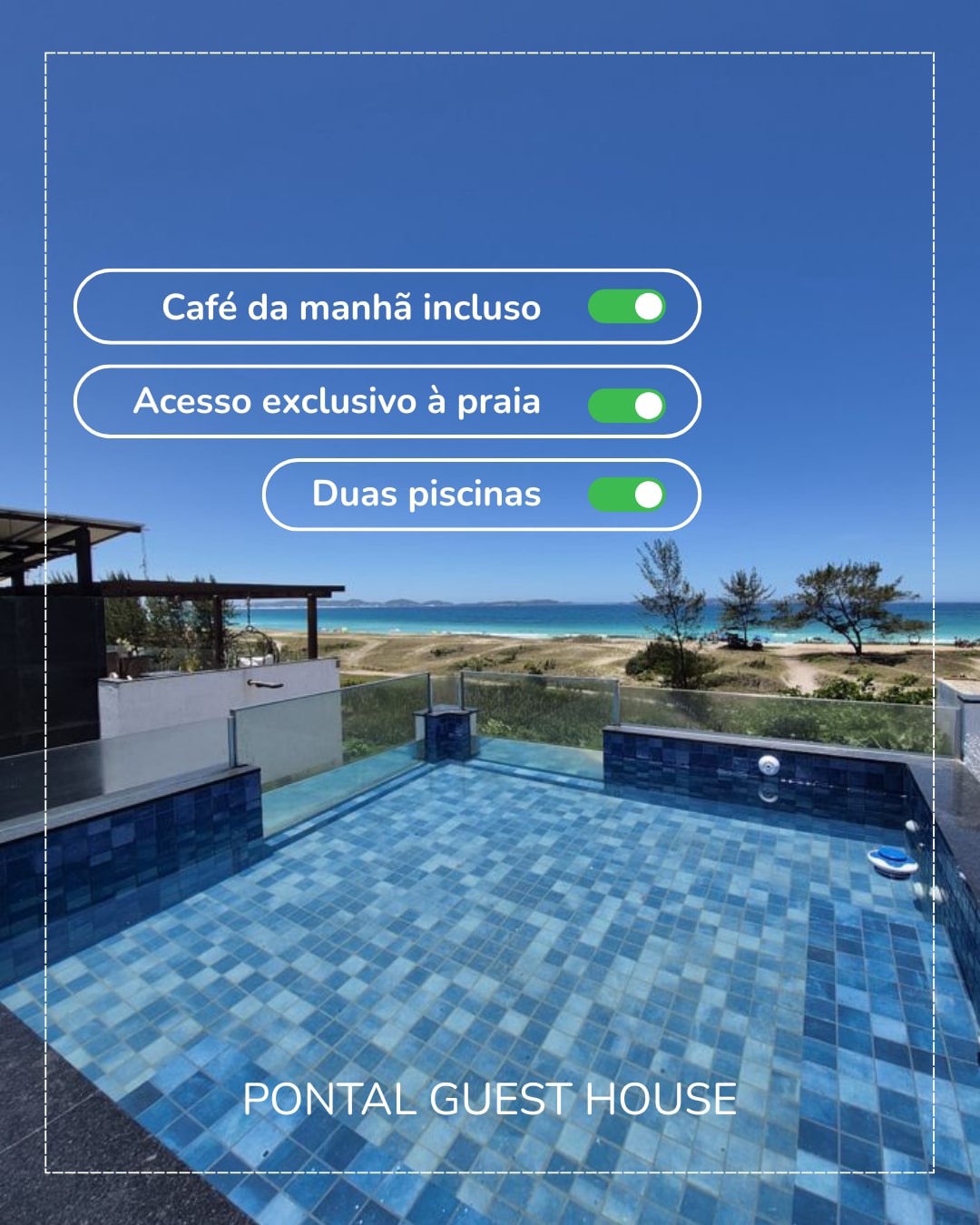 Acorde olhando para uma lindíssima vista da praia, em um aconchegante espaço exclusivo para você e sua família! São 80m² no 2º andar da Casa Brisa da Lagoa: suíte com closet e ar condicionado, sala de estar com Smart TV (inclui canais Sky), mesa de jantar , banheiro social, sala de jogos com mesa de sinuca, totó e dardos! A nossa cozinha-bar é um charme a parte, compacta e possui os utensílios essenciais. Todo conforto, espaço e tranquilidade para aproveitar a sua viagem em grande estilo!