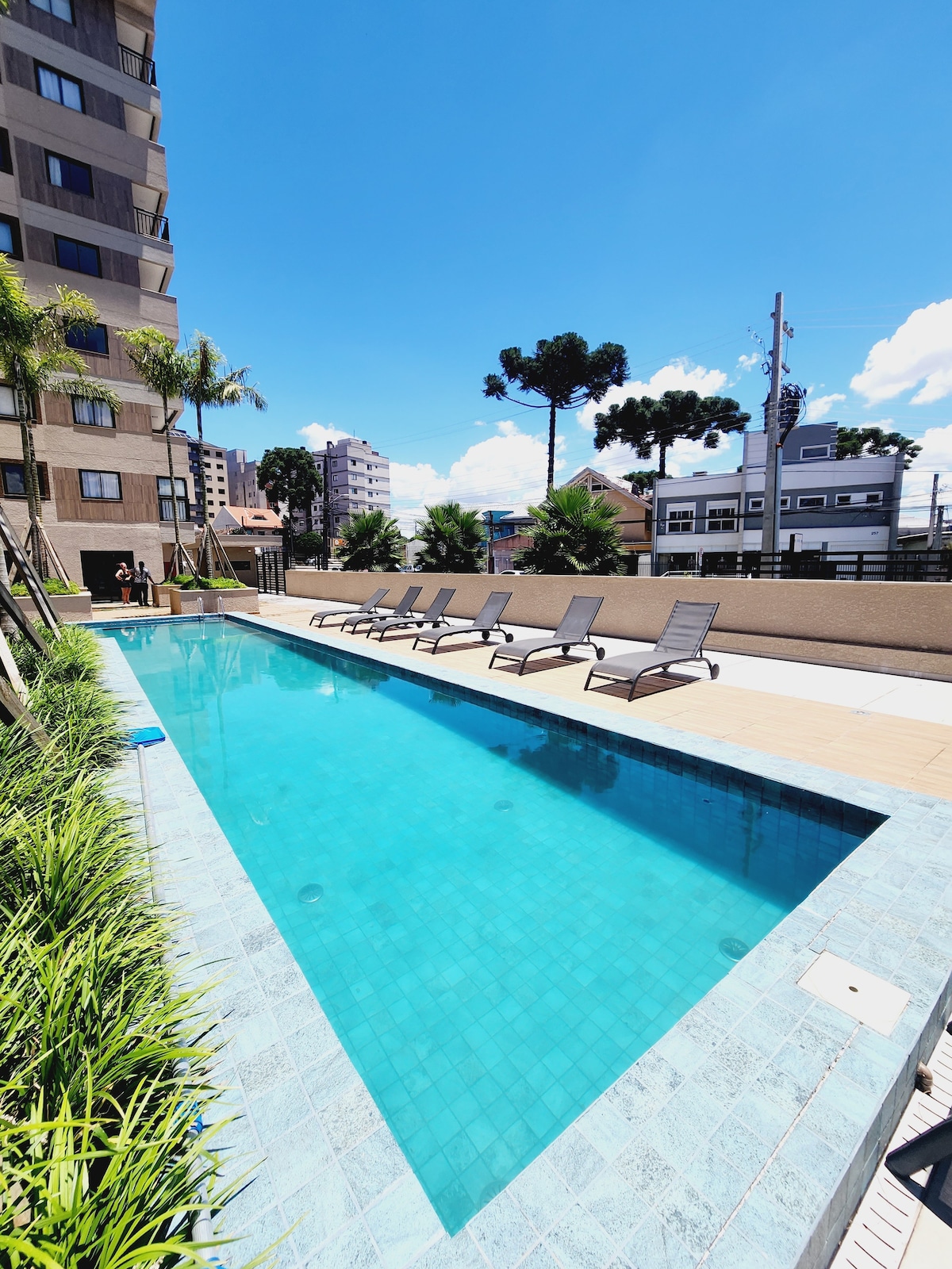Fuld luksusstudie på 29. etage, Smart stort tv, WI-FI, NET, aircondition, indendørs garage, pool, fitnesscenter, plads til yoga/pilates, sportsbane, udsigtspunkt, poolrum, kontorfællesskab, kontorfællesskab, arbejdsværelse, købmand og marked, alt i bygningen ved siden af shoppingstationen og nem adgang til de vigtigste turiststeder i Curitiba. Den er ideel til et par, men der er plads til yderligere to personer på sovesofaen. Perfekt til det særlige øjeblik!