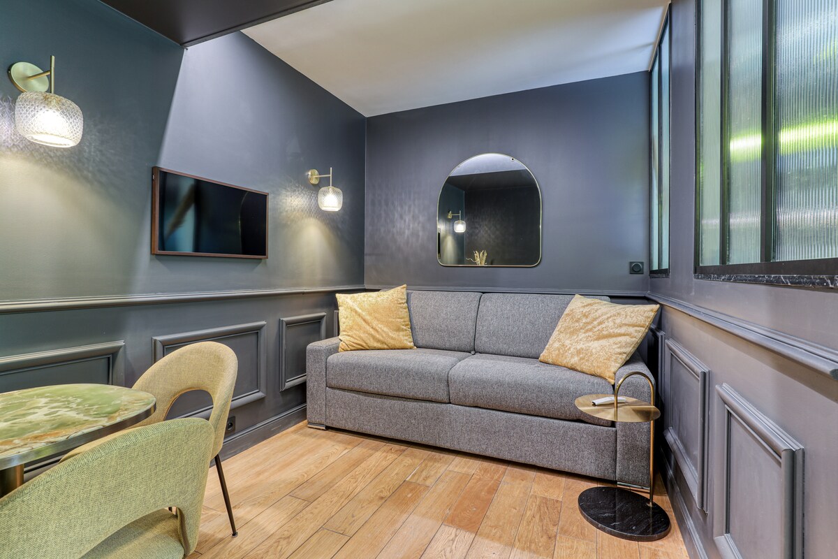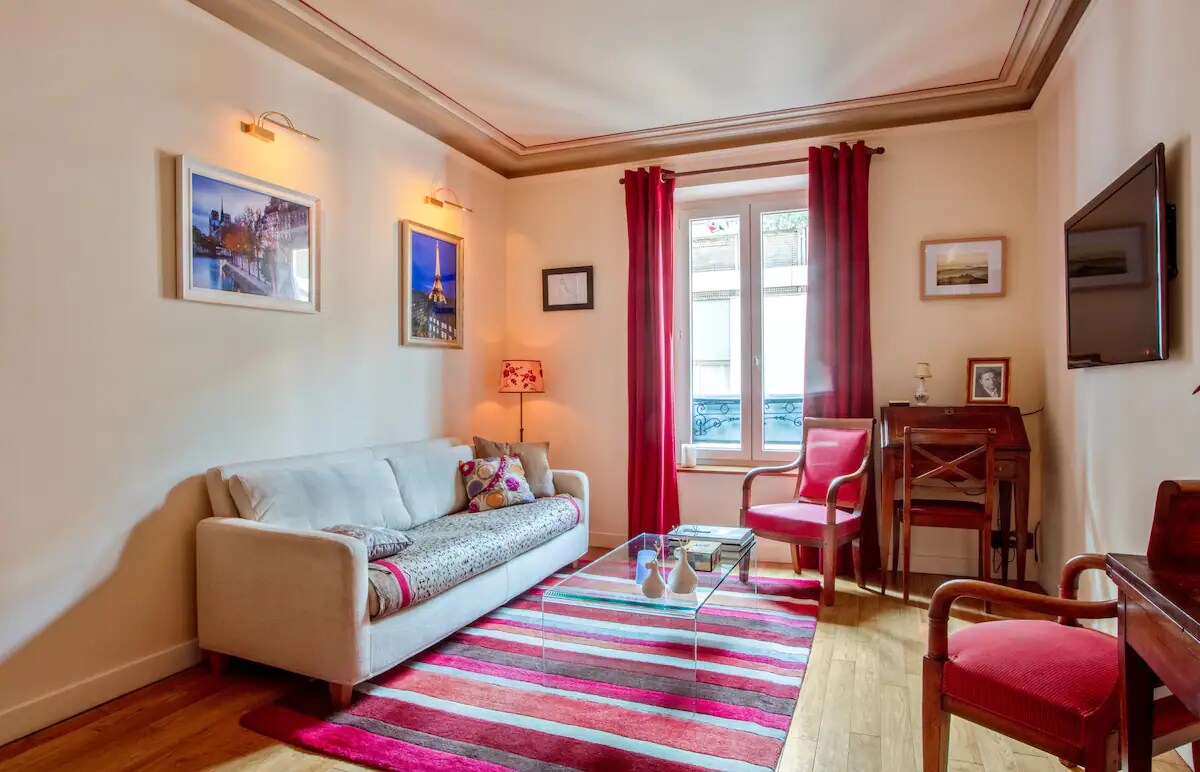 60 m2 klimatiseret lejlighed med eksklusiv indretning i det historiske kvarter Montorgueil i hjertet af Paris, der er berømt for sine delikatessebutikker, små bistroer og restauranter. Lejligheden ligger på 1. sal i en bygning i en meget stille gade. Den blev renoveret i 2023 af en berømt arkitekt og er derfor meget godt indrettet med udstyr af meget høj standard. Du vil føle dig som i en hotelsuite med den ekstra charme, der er ved en ægte parisisk bolig.