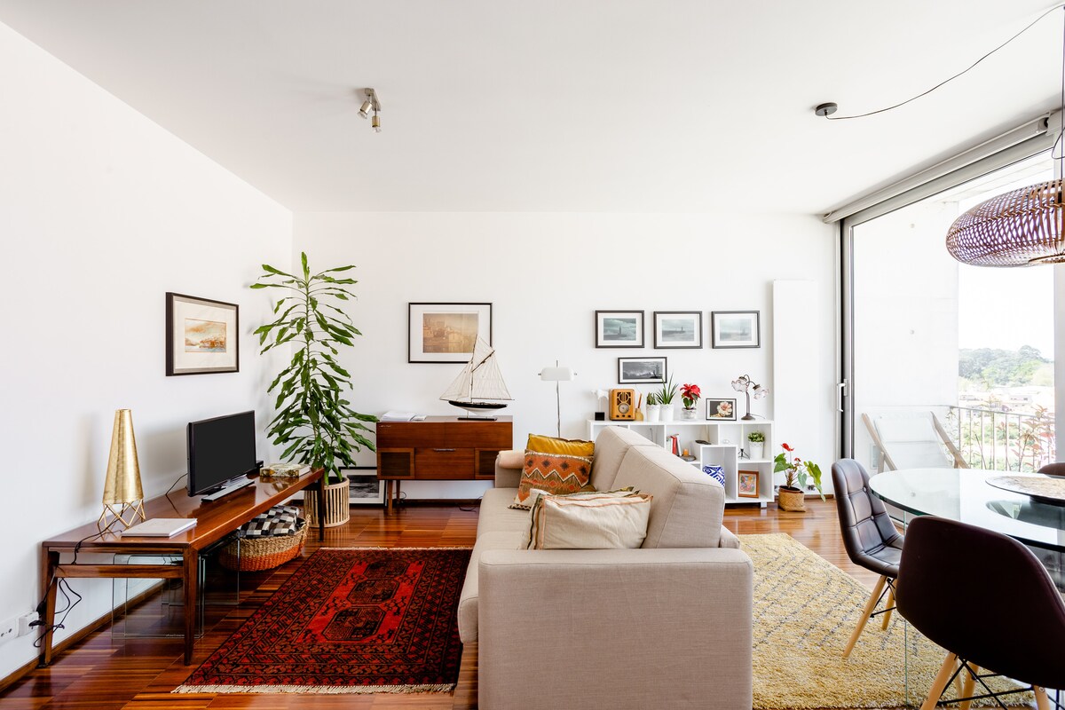 Denne lejlighed på anden sal med plads til op til fire gæster har aircondition, en kombineret vaskemaskine/tørretumbler, et meditationsrum/minitræningsrum og en balkon, der vender ud mod facaden. Soveværelset på nederste etage åbner op til stuen via en skydedør. Tæt på Rua de Santa Catarina og Bolhão-markedet. For gæster, der rejser med små børn, er der efter anmodning en baby-pakke til rådighed (25 euro), som omfatter en barneseng med sengetøj, høj stol, badekar, babyartikler og et babyhåndklæde.
