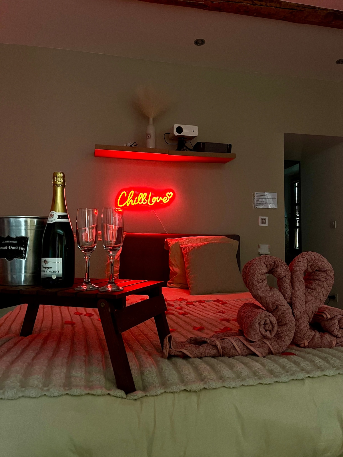 I hjertet af Nîmes, mellem de majestætiske arenaer og Maison Carrée, inviterer dette loveroom på 45 m2 dig til en oplevelse, hvor lidenskab og elegance mødes. Fra 3. sal er der en betagende udsigt over hustagene, perfekt til en romantisk flugt. I denne intime boble er hver detalje udtænkt til at vække sanserne og sublimere jeres øjeblikke sammen. Lad dig forføre af den uimodståelige charme af denne æske, få skridt fra byens historiske skatte. @larenedesplaisirs