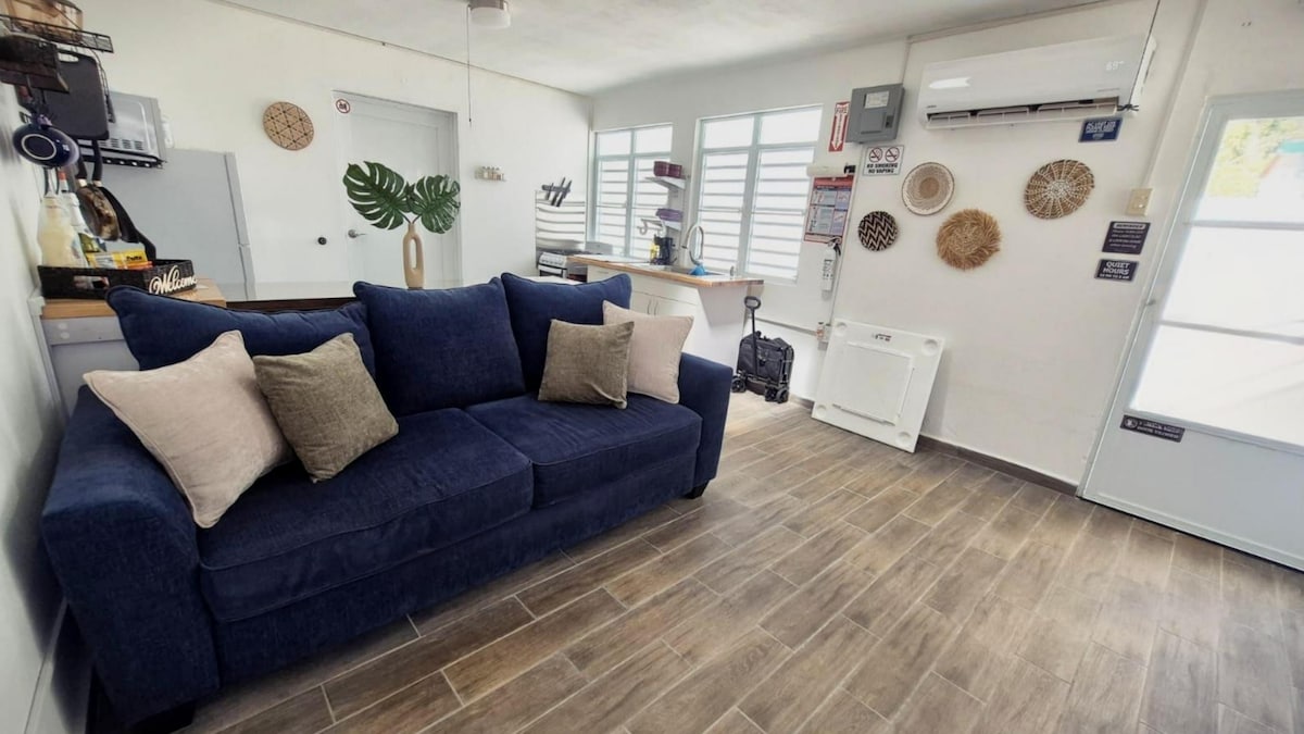 Oplev Casa Taína: et fredfyldt øko-sol-fristed i Islotes frodige tropiske landskab. Denne private lejlighed med låst indgang tilbyder 100 % ubekymret solenergi og en fredelig terrasse. Vi ligger kun 1,1 km (en flad, 16 minutters gåtur) fra Caracoles Beach, 1,6 km fra den hellige Cueva del Indio og 3,7 km fra surfing i verdensklasse på Hallows. Nyd et roligt natursted lidt fra kysten med aircondition, et komplet køkken og filtreret vand. Book dit ophold i dag!