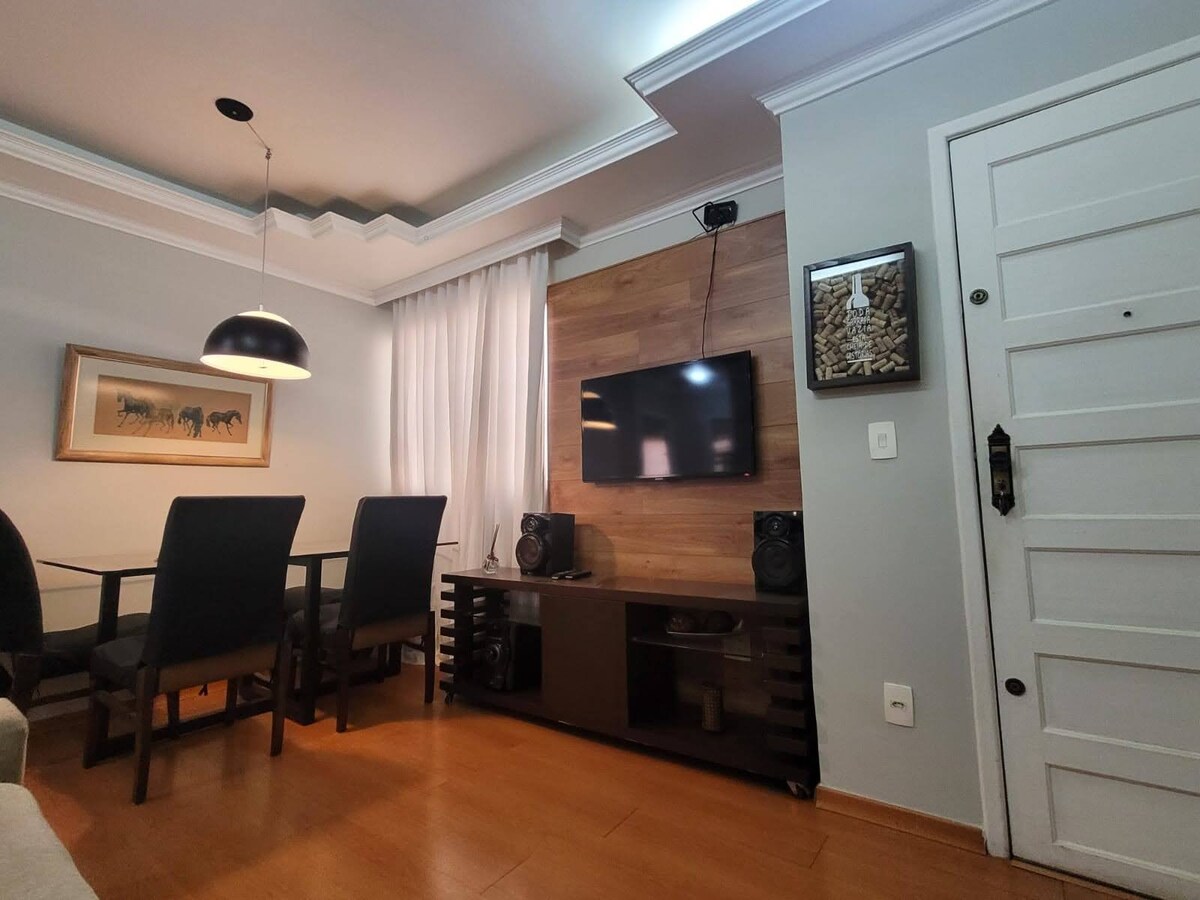 Ny lejlighed, 1 kaj, elevator, roligt sted på det bedste sted i Santa Tereza. Kun 3 minutter fra Hospital São Camilo, 5 minutter fra Hospital da Unimed, 10 minutter fra Santa Casa og hospitalområdet, 6 minutter fra Boulevard Shopping, 11 minutter fra Life Center, 3 minutter fra Colégio Tiradentes, 8 minutter fra Centro de BH, 13 minutter fra Savassi og tæt på de vigtigste barer og restauranter i nabolaget. Garage: 30 BRL/dag. Tjek tilgængelighed på forhånd. Selvbetjent vaskeri 3 minutters gang.