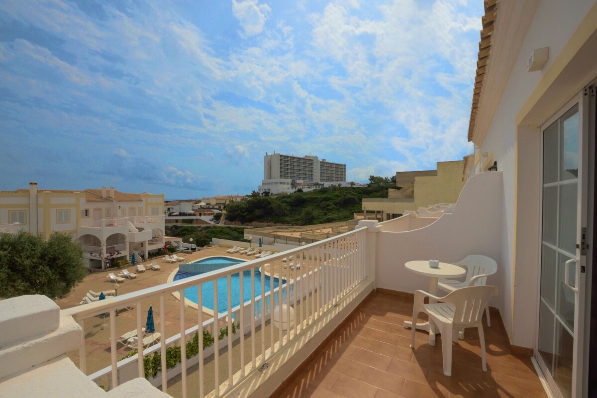Acogedor apartamento de 40 m² con 2 terrazas privadas y vistas al mar, ideal para relajarse en Menorca. 1 habitación, 1 baño, salón con cocina integrada y 2 camas de matrimonio (para 4 personas). Perfecto para parejas o familias pequeñas. Situado en un complejo familiar tranquilo con zonas verdes, cerca de supermercados, parada de autobús y GR. A solo 200 m de la bahía de Arenal d’en Castell, disfruta de sol, mar y actividades al aire libre. ¡Vacaciones inolvidables con todas las comodidades!