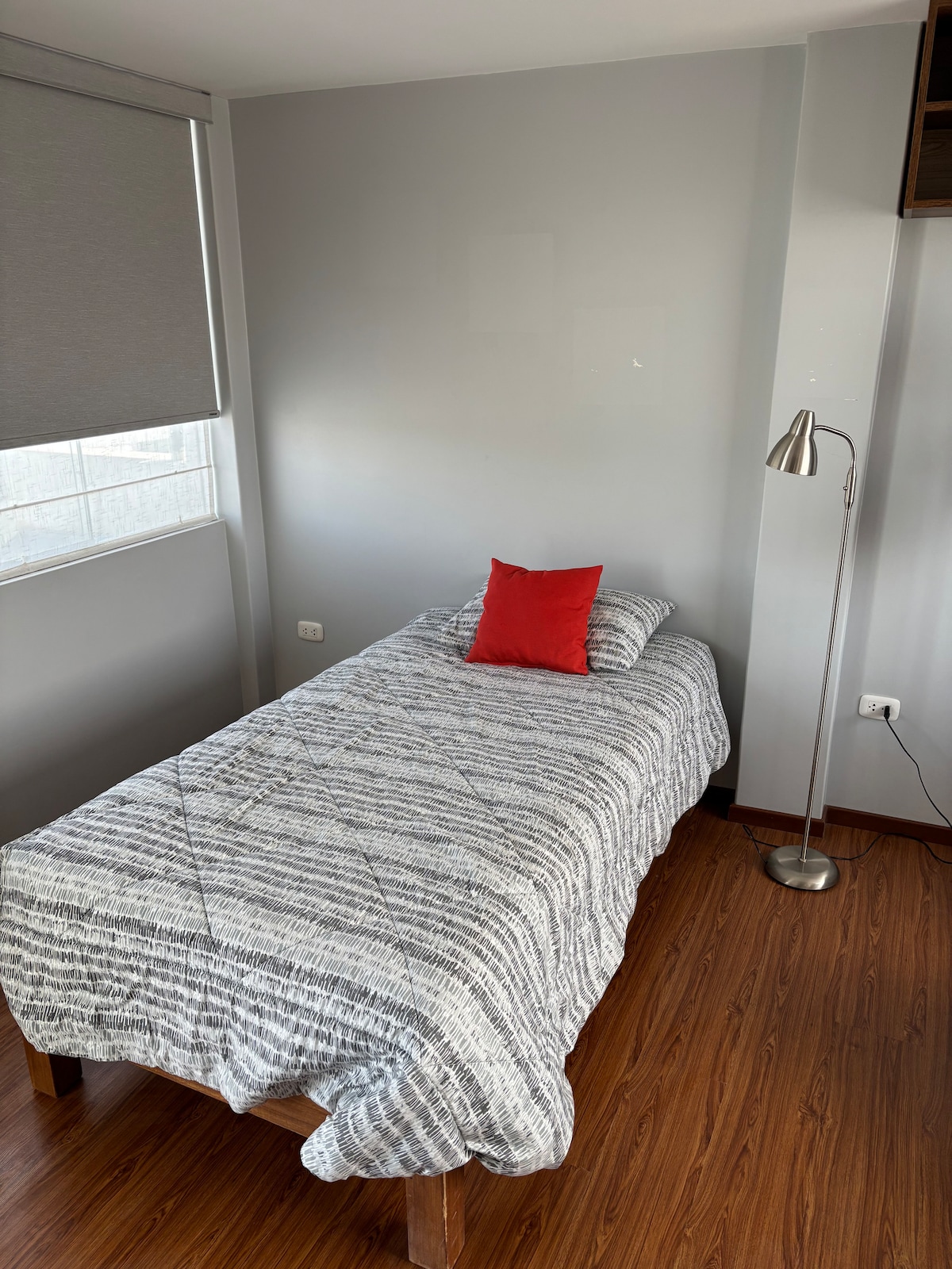 Nyd den permanente sol i Arequipa i en hyggelig bolig, der vil gøre dit ophold behageligt. Den ligger i JLBYR-distriktet i et familiehus på 3. sal, og det er et kommercielt område 12 minutter fra det historiske centrum. Boligen har 2 værelser med 1,5 plz seng, garderobe og kommode, badeværelse, et minikøkken og en spisestue, og den har desuden en stor terrasse, hvor du kan nyde det dejlige klima. Vi tilbyder også vaskeri uden ekstra omkostninger.