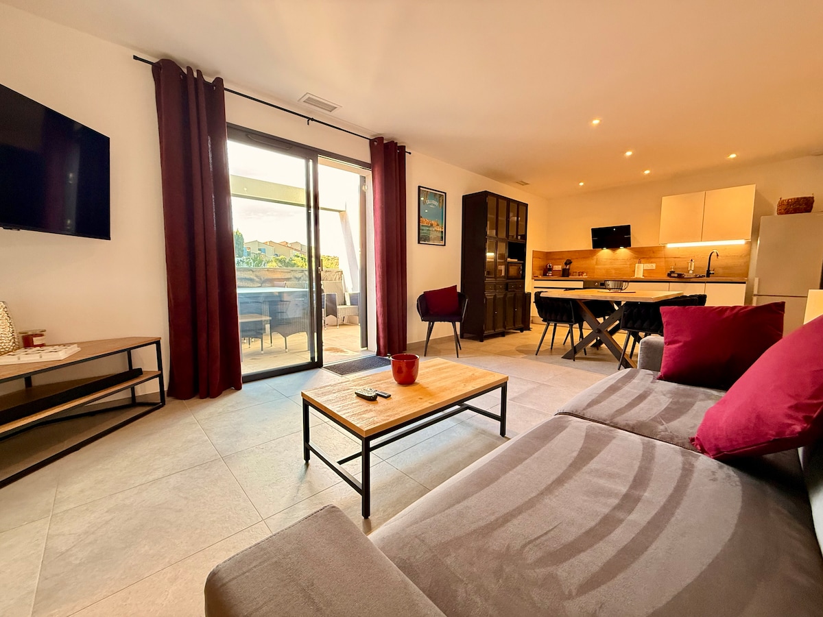 Det dejlige ved at bo i Collioure i harmoniske og varme omgivelser under et ophold for to, med familie eller venner, i hjertet af Sydfrankrig! Nyd en rolig pause i denne romantiske by, der er rangeret blandt de smukkeste landsbyer i Frankrig og Cité de caractère. Les Ondines, en lejlighed, der kan rumme 4 gæster, ideelt beliggende 5 minutters gang fra hjertet af byen og strandene, er en fantastisk ny 69 m² 3-værelses lejlighed i stueetagen, som tilbyder luksusydelser.
