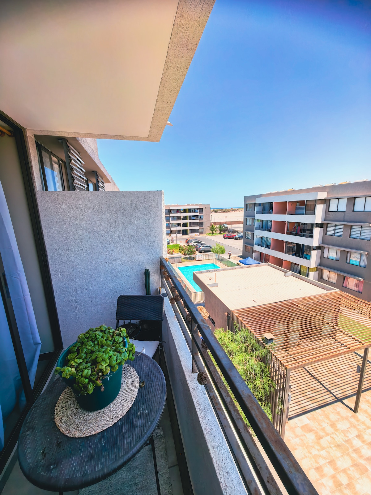 Fuldt møbleret lejlighed i Arica, få skridt fra stranden rolig og sikker sektor, med wi-fi, tv-kabel 50", NETFLIX og YouTube Premium, privat parkering til køretøjer. 3 soveværelser, 2 badeværelser, sengetøj, håndklæder, shampoo, sæbe, kan rumme op til 5 personer spisestue til 8 personer, fuldt udstyret køkken og terrasse med udsigt over haven. Der er en konditionsmaskine og Dolce Gusto-kaffemaskine til en god samtale ved solnedgang. Legeplads og sikkerhedsvagter, fuld