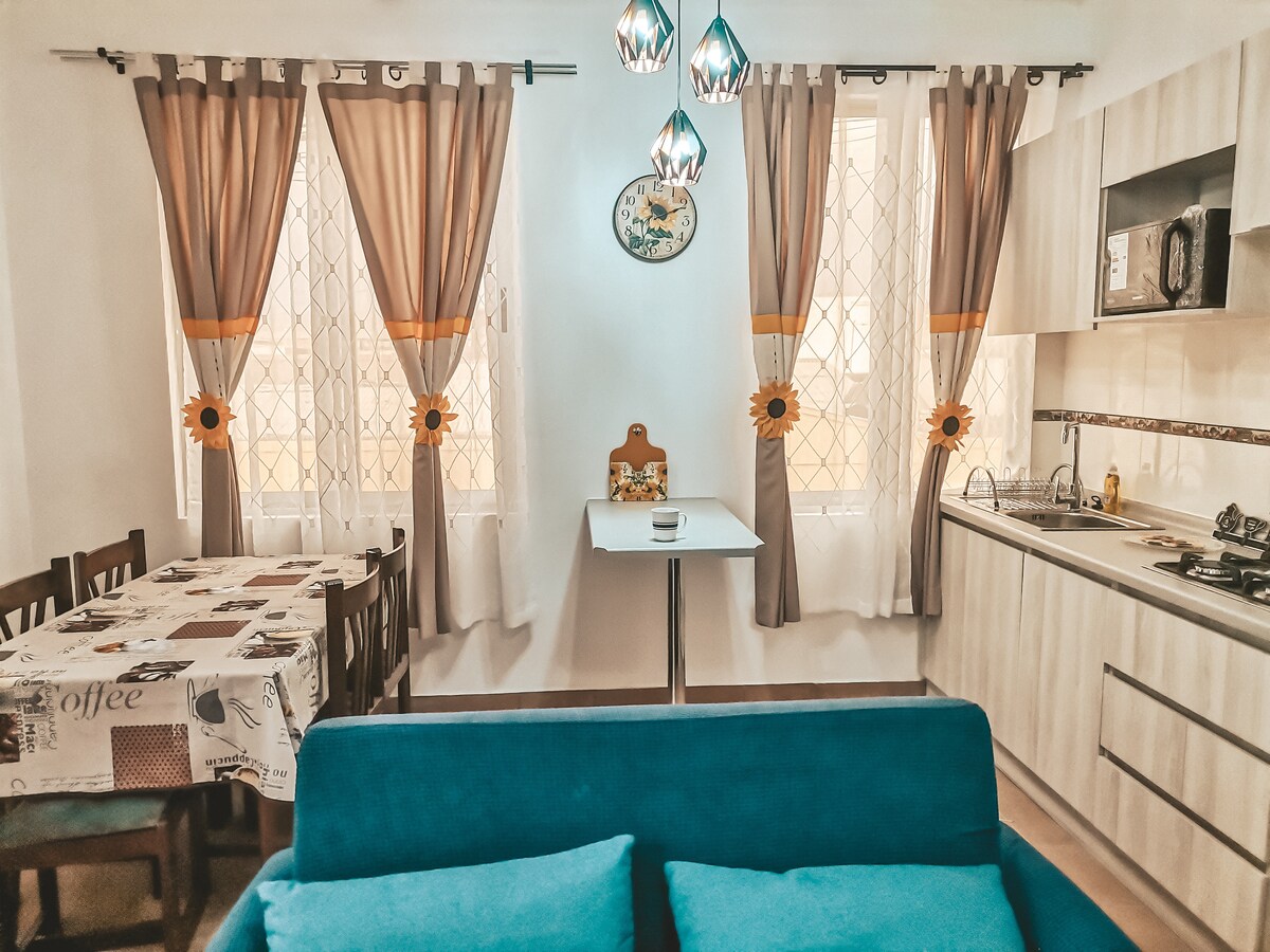 Lejlighed i sikker lejlighed ved siden af stranden. TV i stuen og i det største værelse. Adgang til parkering, internet, kabel-tv. Der leveres automatisk portkontrol. Ny og renoveret lejlighed. Den har vaskemaskine, og der leveres et håndklæde, rengøringsartikler og basale forsyninger som te, kaffe, sukker. Hårtørrer og strygejern. Udstyret amerikansk køkken. Foran er der et apotek og minimarked og messe 50 meter væk. Vi har lufthavnstransport. TNT Sport HD.