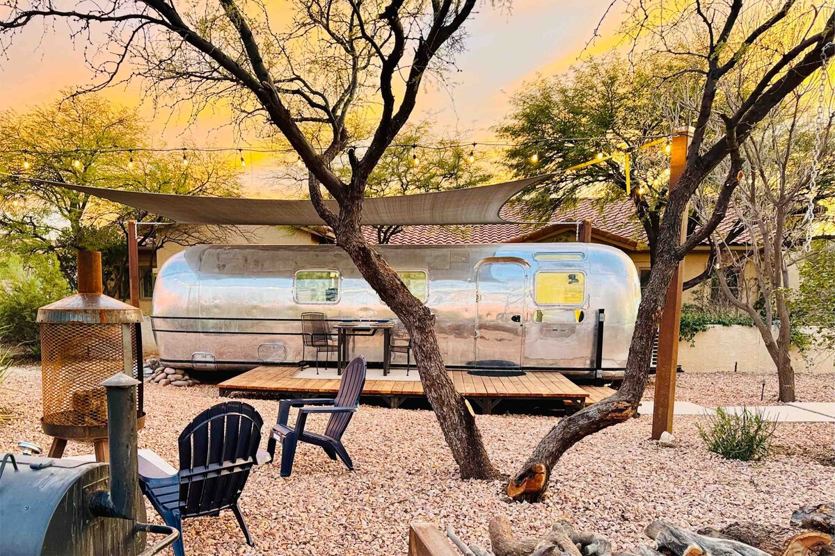 Charmerende 1961 vintage "retro" Airstream trailer med privat have. Køkkenapparater, køleskab, aircondition, varmeapparat, DVD, varmt brusebad, toilet. Fantastisk central beliggenhed, "Glamping" midt i Tucson. Adgang til grill, udendørs køkkener, haver. Beklager, campingvognen er lille og designet til en person - den er ikke egnet til et par.