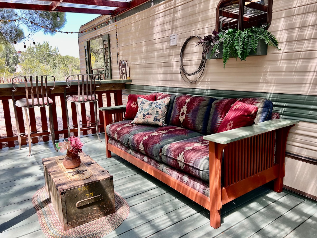 Velkommen til Lazy Lariat Pines, hvor ørkenen møder landet. Omgivet af modne træer med en antydning af fyrretræaroma får du mulighed for at slappe af i dit eget private fristed. Slap af på en terrasse, og lyt til fuglekvidren. Om natten kan du opleve skønheden i Arizonas himmel; den uendelige legeplads for stjerner og planeter. Campingvognen stråler med en indbydende atmosfære af gammel charmeindretning. De hyggelige værelser giver komfort og er klar til at hjælpe dig med at slappe af, når du har udforsket Verde Valleys vidundere og de omkringliggende områder.