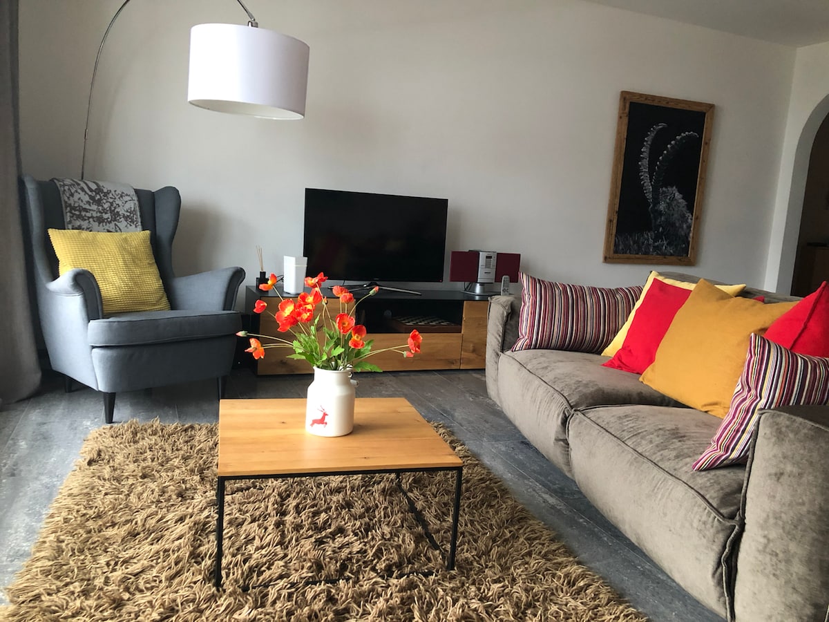 Moderne og hyggelig bjerglejlighed med udsigt