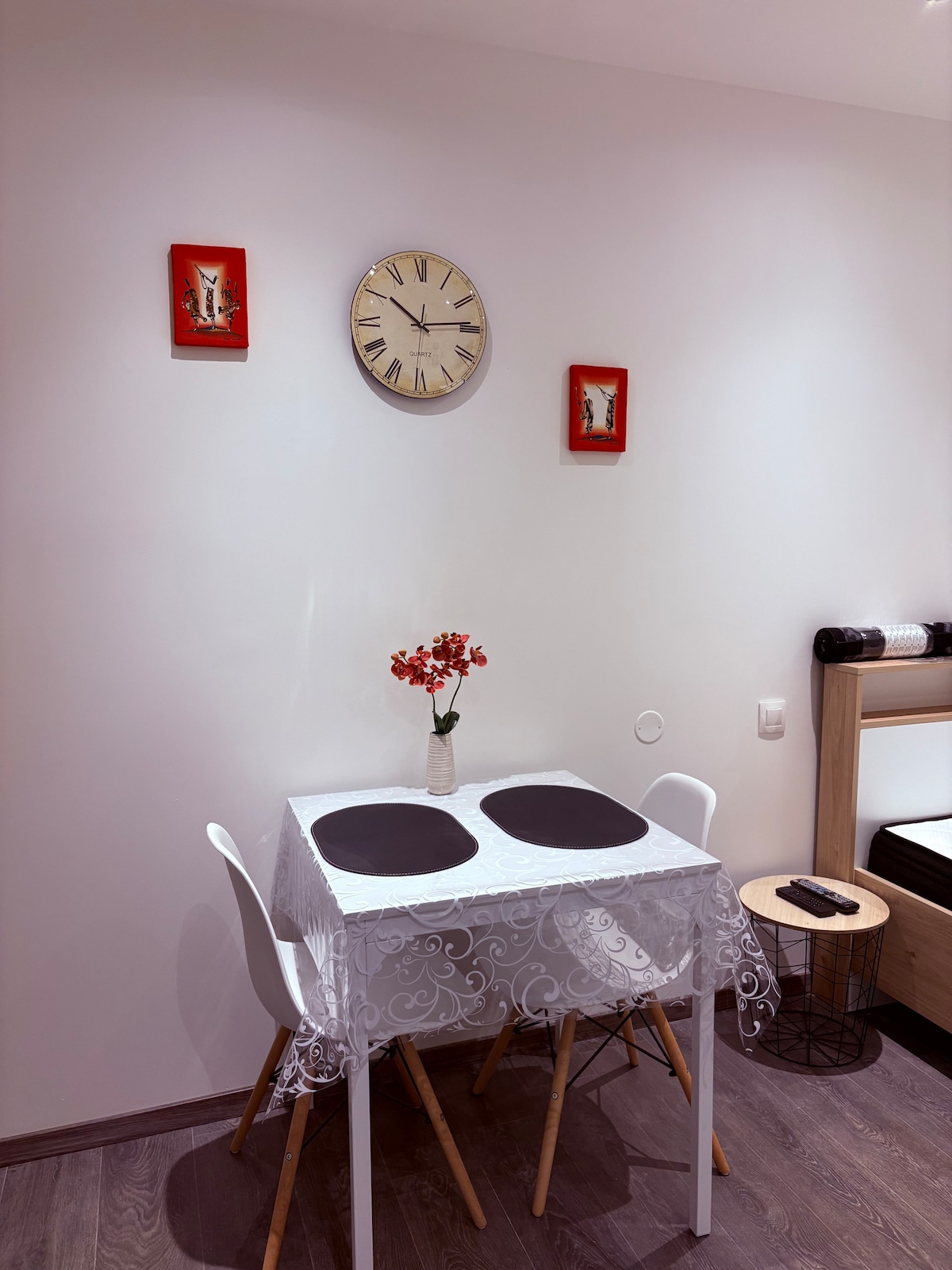 Lejlighed på 54 m2 + balkon beliggende i en sikret ejendom, fredfyldt og grønne omgivelser, tæt på alle bekvemmeligheder, 1. sal, privat parkering og pladser til besøgende. Består af en rummelig stue med sovesofa, et soveværelse (dobbelt seng), et køkken med opvaskemaskine, et badeværelse med badekar, separat toilet, flot skrivebord til fjernarbejde, opvaskemaskine, masser af opbevaring og renoveret