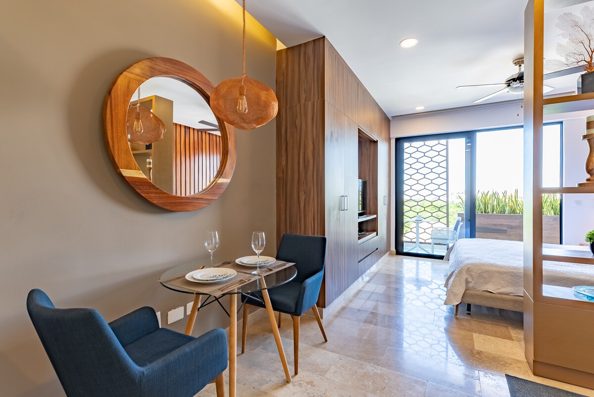 Luksuriøs suite med 1 soveværelse, der tilbyder privatliv på en eksklusiv beliggenhed, der er designet til at få dig til at føle dig i paradis. Med sin uovertrufne beliggenhed kun 150 m fra stranden og 2 minutters gang fra 5th Avenue, hvor du finder restauranter, barer og butikker. Du har også adgang til den bedste tagterrasseudsigt i Playa del Carmen samt concierge og 24-timers sikkerhed.
