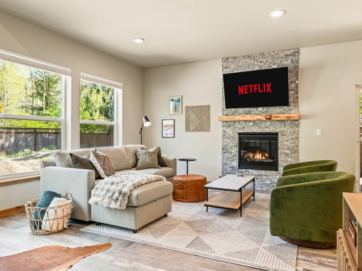 Velkommen til Green Dream @ Mt Rainier! Vores hytte ligger 10 minutter fra indgangen til Mount Rainier National Park og har følgende højdepunkter: - Privat baghave med boblebad, bålplads, grill - Førsteklasses sengetøj (700 trådlagener, Casper-madras, kvedebetræk, ekstra tæpper) - Starlink WIFI med dedikeret arbejdsstation - Smart-tv, dvd-/filmprojektor, underholdningsbibliotek - Chef's Kitchen - Pejs, aircondition - Strømafbrydelser (**Der forekommer strømafbrydelser her**)