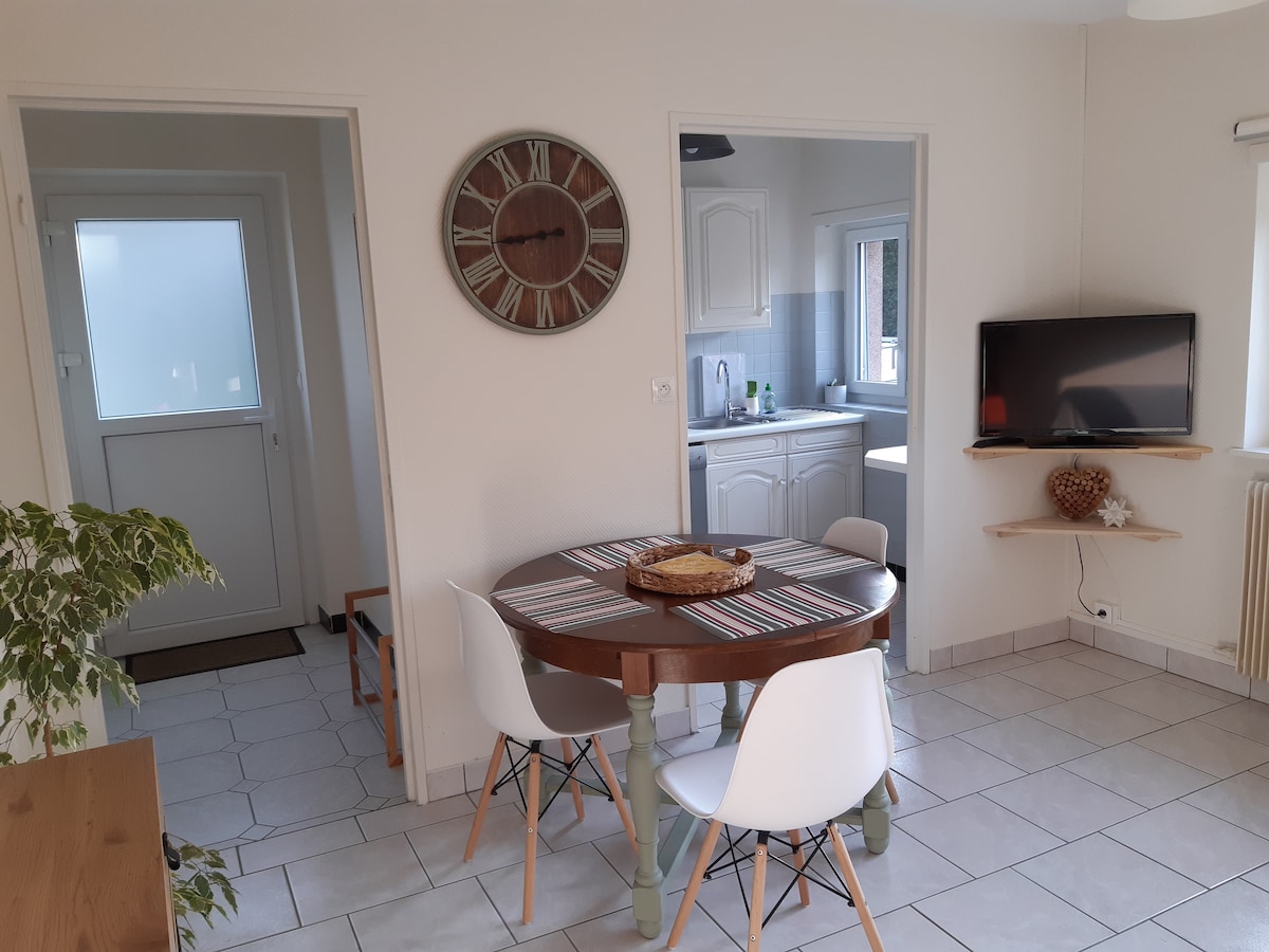 Sympathique et lumineux appartement de 46 m², en rez-de-jardin d'une maison, avec porte d'entrée individuelle. Il est composé d'une pièce de vie avec cuisine et TV, d'une grande chambre avec coin de lecture et bureau ainsi que d'une salle de bains avec WC, douche/baignoire. Une place de parking est disponible dans la cour pour se garer. Le logement est situé dans un quartier calme à 2 min à pied de la gare, d'un supermarché et à 5 min du joli centre-ville de Thann.