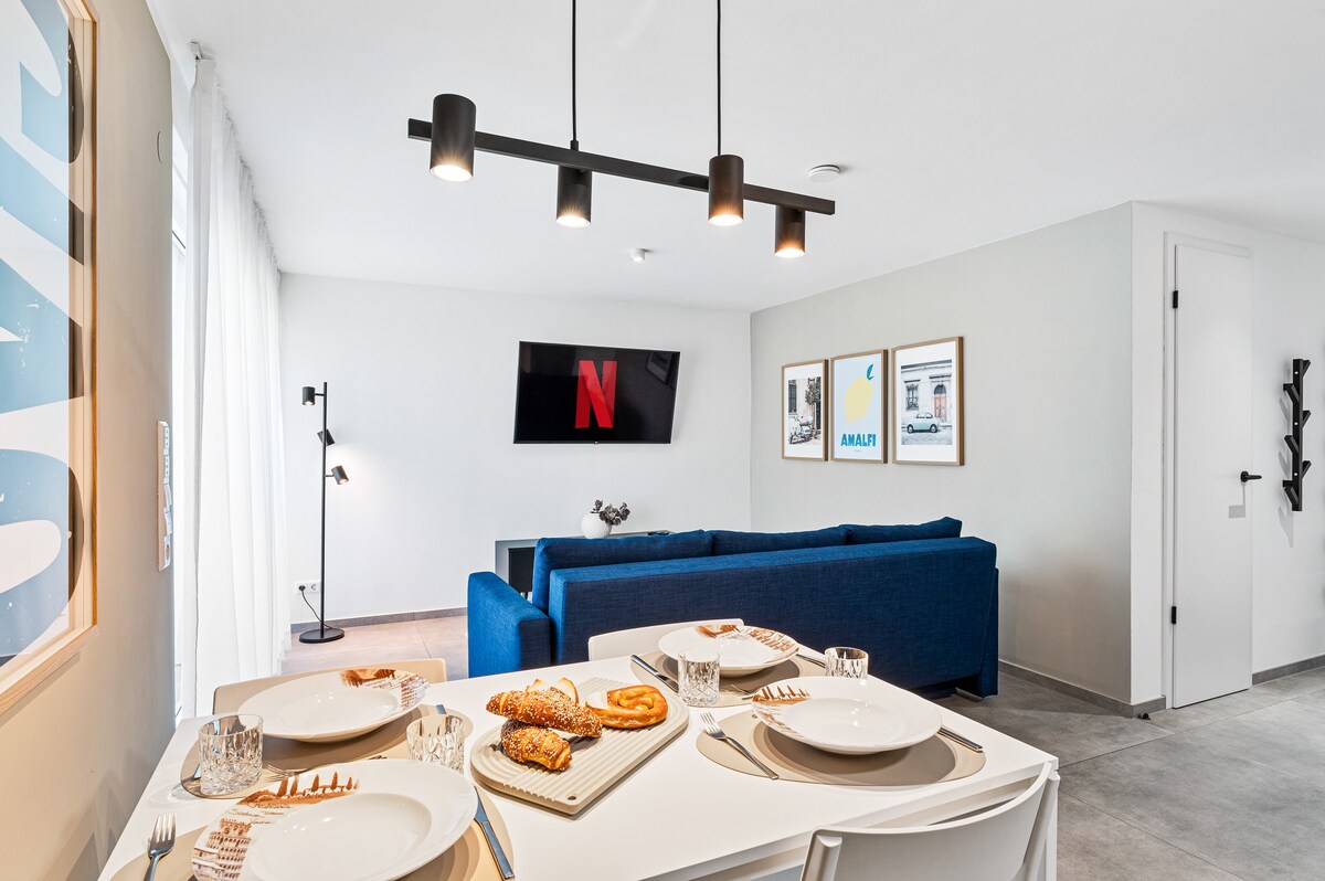 ⭐️Nye møbler ⭐️stilfulde og moderne ⭐️hurtig wi-fi ⭐️Amazon Prime ⭐️gulvvarme ⭐️køkken med mikrobølgeovn og opvaskemaskine og meget mere... Det er en lille, innovativ lejlighed tæt på hovedbanegården med parkering i nærheden, og et busstoppested er kun et par minutter væk. Jeg vil meget gerne byde dig velkommen der som min gæst, og jeg vil være den pålidelige 5 ⭐️- vært, du allerede har oplevet.