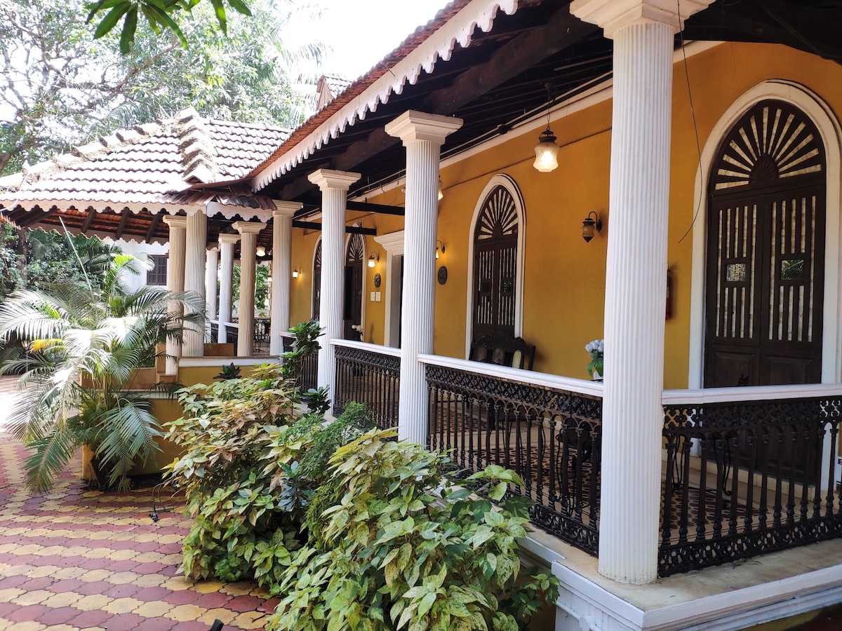 Ejendommen er det berømte Gonsalves Mansion, der er bedst kendt for at være vært for jazzbegivenheder gennem årene. The Mansion is almost 100 years old, built during Portugese rule in Goa with over 22 rooms. currently resided by the owner, Armando Gonsalves, his wife Shaeen & 2 smallddler sons Liam and Stellan. Men størstedelen af palæet, herunder gårde, veranda, garage, spisestue, køkken osv. er en del af denne bolig. Mr. Gonsalves har opkaldt suiterne efter sine børn Nihal, Zenisha, Liam og Stellan.