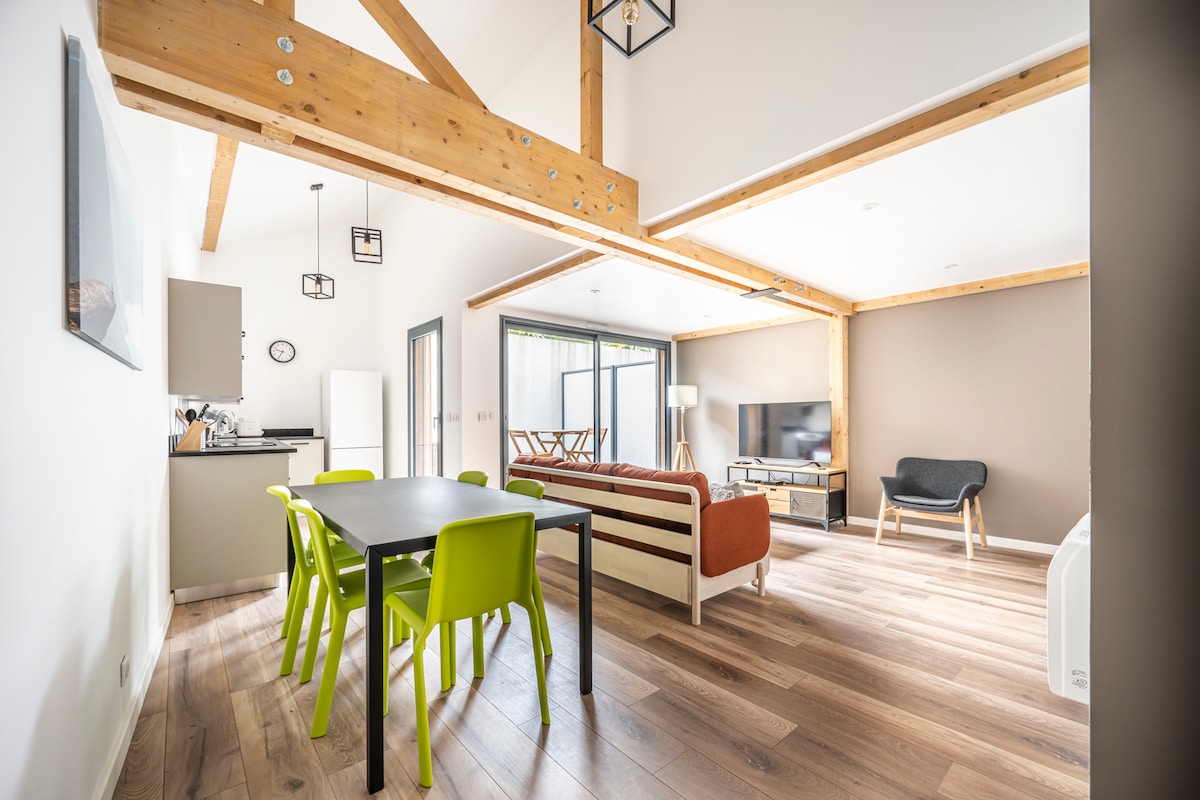 I centrum af Pau, lige overfor slottets haver, kan du bare sætte din kuffert ned og nyde byen! Efterlad din bil i den lukkede garage i stueetagen under dit ophold, ladestation til el-bil 22kW, Type2, Freshmile. Busstoppesteder og mange restauranter 500 m væk, Boulevard des Pyrénées 600 m væk, golf 1,3 km væk. Duplex-lejlighed på 53m² med aircondition, der kan rumme 4 personer, udstyret grøn terrasse.