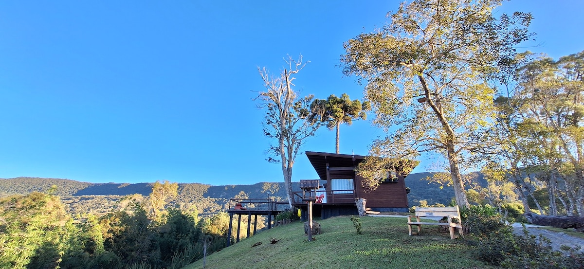 Beliggende i Presidente Nereu - SC Hytten er en rustik og moderne blanding, der kombinerer disse elementer med et unikt aspekt. Der er en af de bedste udsigter over Serra Catarinense, og der er vand, komplet køkken, pejs og seng med myggenet.