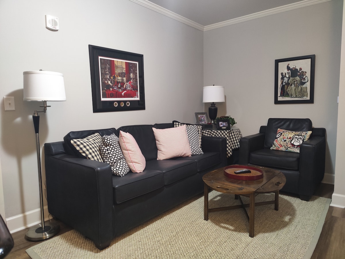Stadium Village Retreat – Enjoy game-day convenience at this cozy one-bedroom, one-bath second-floor apartment just a short walk from Sanford Stadium and downtown Athens. Perfect for couples, small families, or friends, it offers a comfortable living space with a pull-out couch, a fully equipped kitchen, and all the essentials for a relaxed stay. Whether you’re here for football weekends, concerts, or exploring Athens, this retreat puts you right in the heart of the action.
