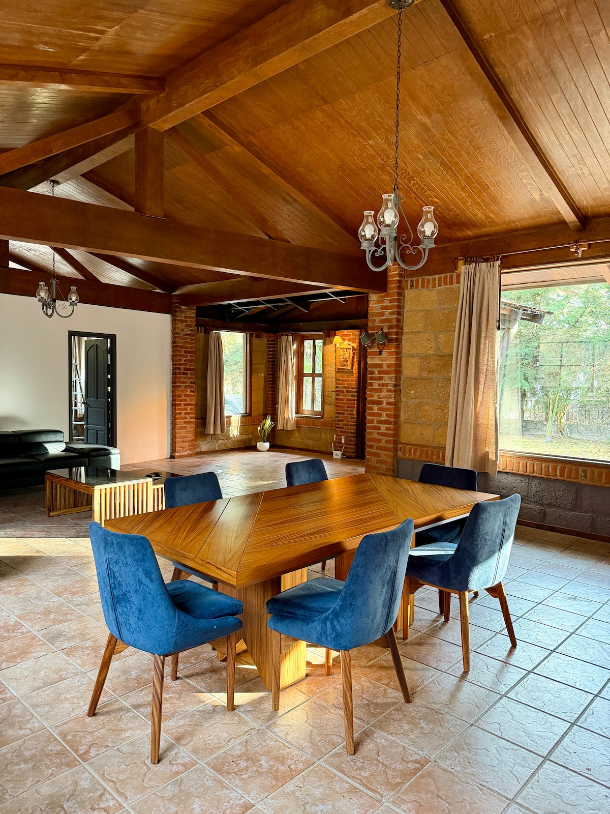 Conecta con la naturaleza, lujo, seguridad y exclusividad sin tener que viajar horas, en la Cabaña estarás rodeado de muchos árboles, aves, ardillas y un río justo enfrente, para pasar un día completamente relajante disfrutando de la tranquilidad, recorriendo el rancho, visitando la capilla, haciendo una carne asada en medio del bosque, desayunar en el jardín, asar bombones en nuestra chimenea, dormir en nuestras hamacas al aire libre y pasar horas de completa paz y tranquilidad.