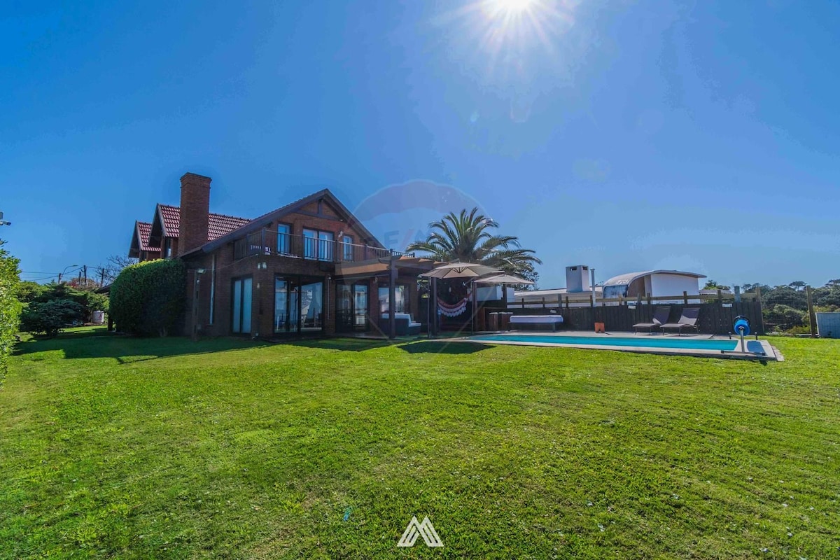 Hermosa casa frente al mar, Planta Baja: living comedor con estufa a leña, galeria al frente cerrada y salida a un deck pergolado, donde se ubica la piscina climatizada, un baño completo, cocina con salida a un sector de lavadero, dormitorio en suite. Amplia barbacoa con parrillero. Planta Alta: hall de distribucion con salida a una terraza con vista al mar, cuatro dormitorios y un baño completo. Aires acondicionado en planta baja y planta alta. Estufas y ventiladores en cada dormitorio.