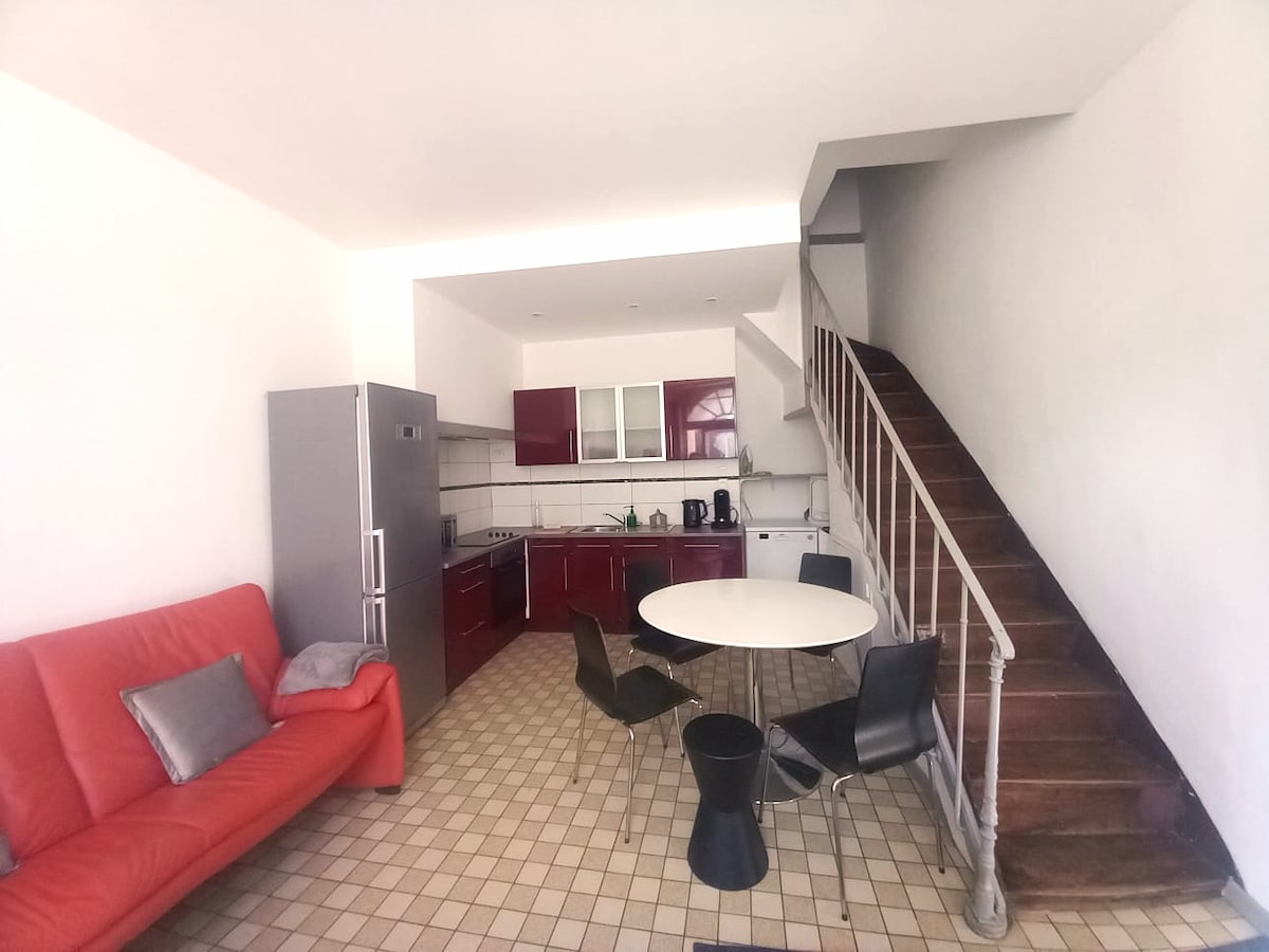 Charmerende byhus i hjertet af Auch, 5 minutter fra togstationen og 8 minutter fra det historiske centrum. Ægte sten og parket, lyse rum. 2 soveværelser + kontor med dobbeltseng, til 6 gæster. Udstyret hus: Wi-fi, tv, aircondition, sengetøj. Funktionelt køkken. Fantastisk til et behageligt og venligt ophold for familier eller vennegrupper.