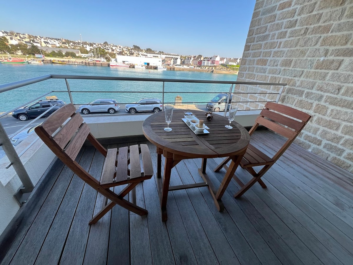 ⭐️ Velkommen til denne moderne og komfortable lejlighed, der ligger i en sikker bolig med en betagende udsigt over havnen i Audierne. 🌊 Nyd den utrolige panoramaudsigt over havet, som om det kom ind i din bolig. 🛏️ Det har to soveværelser, et med en sovesofa og indbygget madras for optimal komfort. Køkkenet er fuldt udstyret, og der er sengetøj samt håndklæder til din komfort. sikker 🅿️ parkeringsplads i bygningen