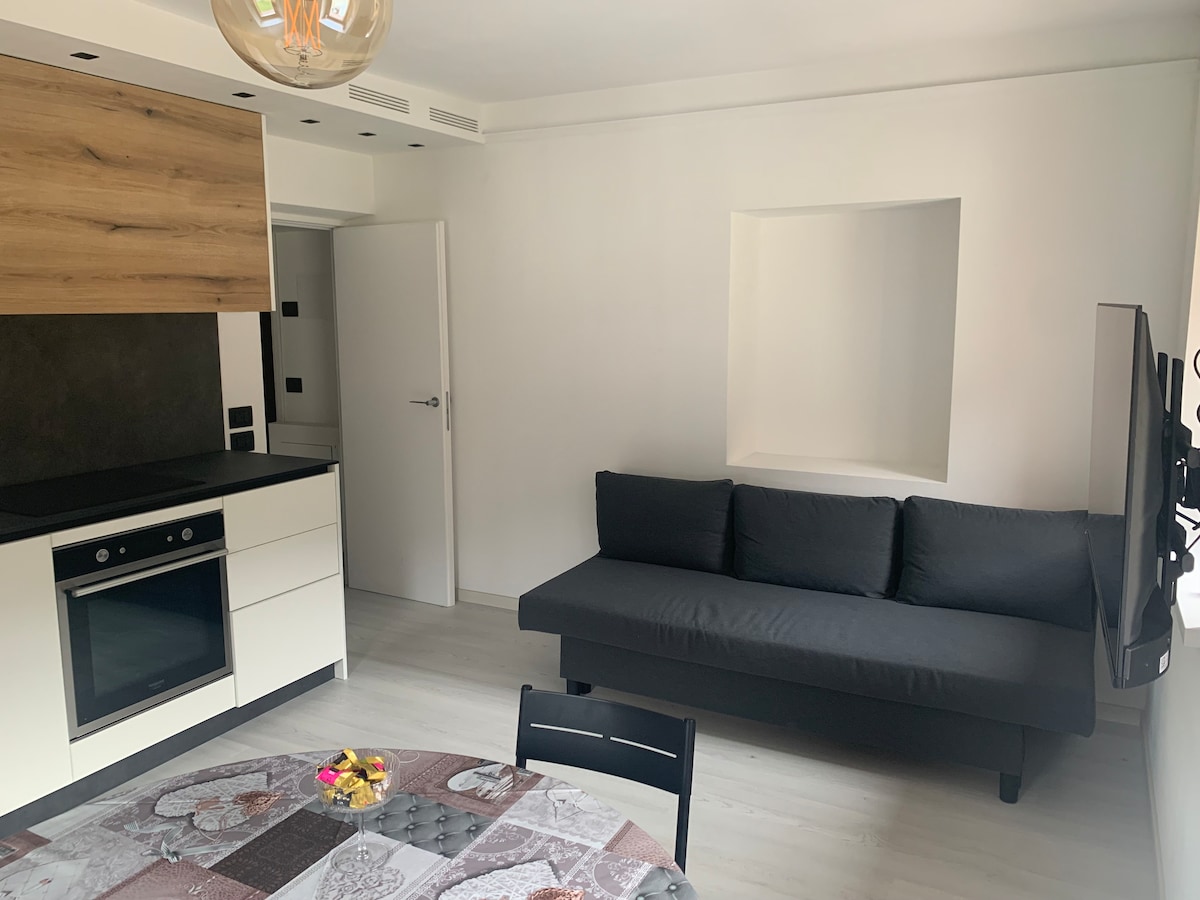 Ny og komfortabel lejlighed med stor stue og køkken, to dobbeltsoveværelser (sovesofa til rådighed i stuen) med to store terrasser, hvoraf den ene har udsigt over søen og Tre Cime di Lavaredo, der ligger i centrum af Auronzo di Cadore. Udstyret med opvaskemaskine, vaskemaskine, støvsuger, to walk-in-klædeskabe, skrivebord og wi-fi. Mulighed for sengetøj og håndklæder efter anmodning