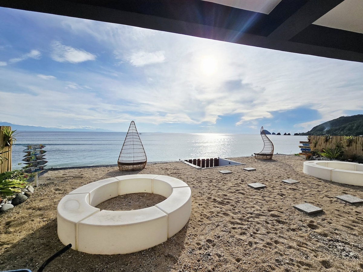 Lind Shores Guest House is a beachfront-rock formation,shared- property which features ocean views to have a perfect place for relaxation and vacation. 2 rooms : 1(GF) 2(2F), are equipped each with 2 double beds, 2 single bed(pull out), aircon, electric fan, emergency light, and mini refrigirator(1st Floor).It has private kitchen on the ground floor with basic utensils, electric kettle, stove top(gas range)and outdoor kitchen. It has 1 cottage with barbecue grill for dining outside.