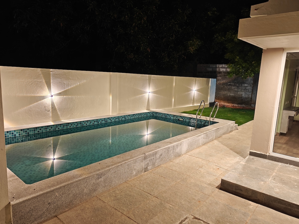 Maple Dreams Retreat – En fredfyldt villa ved poolen Slap af i en charmerende villa ved poolen med to hyggelige værelser, en central gårdhave og en frodig grøn græsplæne i skyggen af neem- og mangotræer. Villaen er perfekt til familieferier eller fredfyldte ophold og tilbyder en forfriskende swimmingpool, udendørs opholdsrum og naturens beroligende omfavnelse. Oplev komfort, privatliv og tidløs charme – din private udflugt, hvor hvert øjeblik føles forfriskende og mindeværdigt.