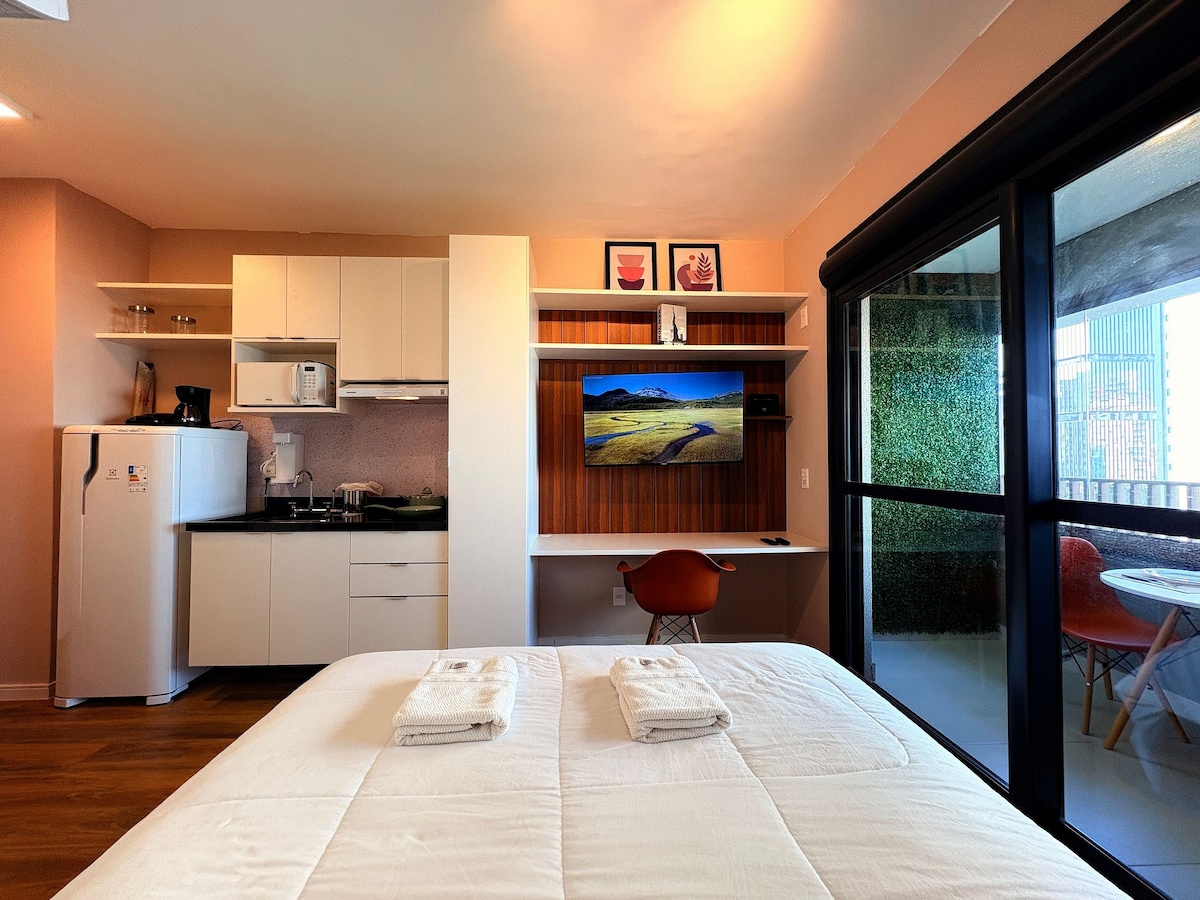 **Studiet har ingen parkeringsplads** Bo komfortabelt og med en privilegeret beliggenhed i São Paulo! Få minutter fra strategiske punkter: - MorumBis Stadion og Vibra São Paulo – 6,4 km. - Interlagos racerbane - 7,1 km. - USA's konsulat - ca. 1,3 km til fods. - Albert Einstein Undervisnings- og Forskningscenter – 6 km. - Congonhas Lufthavn – 4,5 km. - Metrostation - 40 skridt fra Brooklin station - lilla linje Perfekt til både forretningsrejser og fritidsrejser!