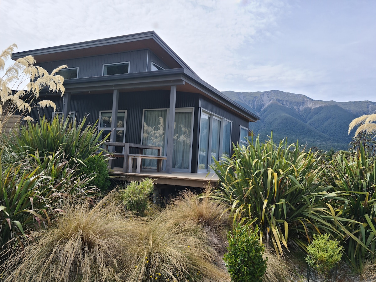 Black Mountain ligger i udløberne af Kaikōura Seaward Ranges, 6 km nord for byen Kaikōura. Boligen er designet til korte og længere ophold og er privat, fredeligt og beliggende i et smukt landskab. Soveværelset, stuen og spisestuen, badeværelset og terrassen har udsigt over bjergene og haven, og der er glimt af havet fra grunden. Ved ankomsten finder du et lille udvalg af frisklavede forsyninger – nok til en enkel morgenmad eller to, på vores regning.