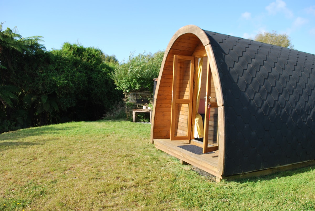 Afskåret og hyggelig 'off-grid' Eco camping pod med udsigt over Hokitika River, lige ved siden af West Coast Wilderness cykelsti. Beliggende i private omgivelser, så I har boligen for jer selv. Udstyret med et udendørs varmt brusebad, køkken i lejrstil med rindende vand. Der er ingen strøm eller wi-fi, så du kan nyde de naturlige omgivelser. Så læn dig tilbage, og nyd de herlige solnedgange på vestkysten. Beliggende kun 3 km fra Hokitika by og strand og 3 km fra lufthavnen.