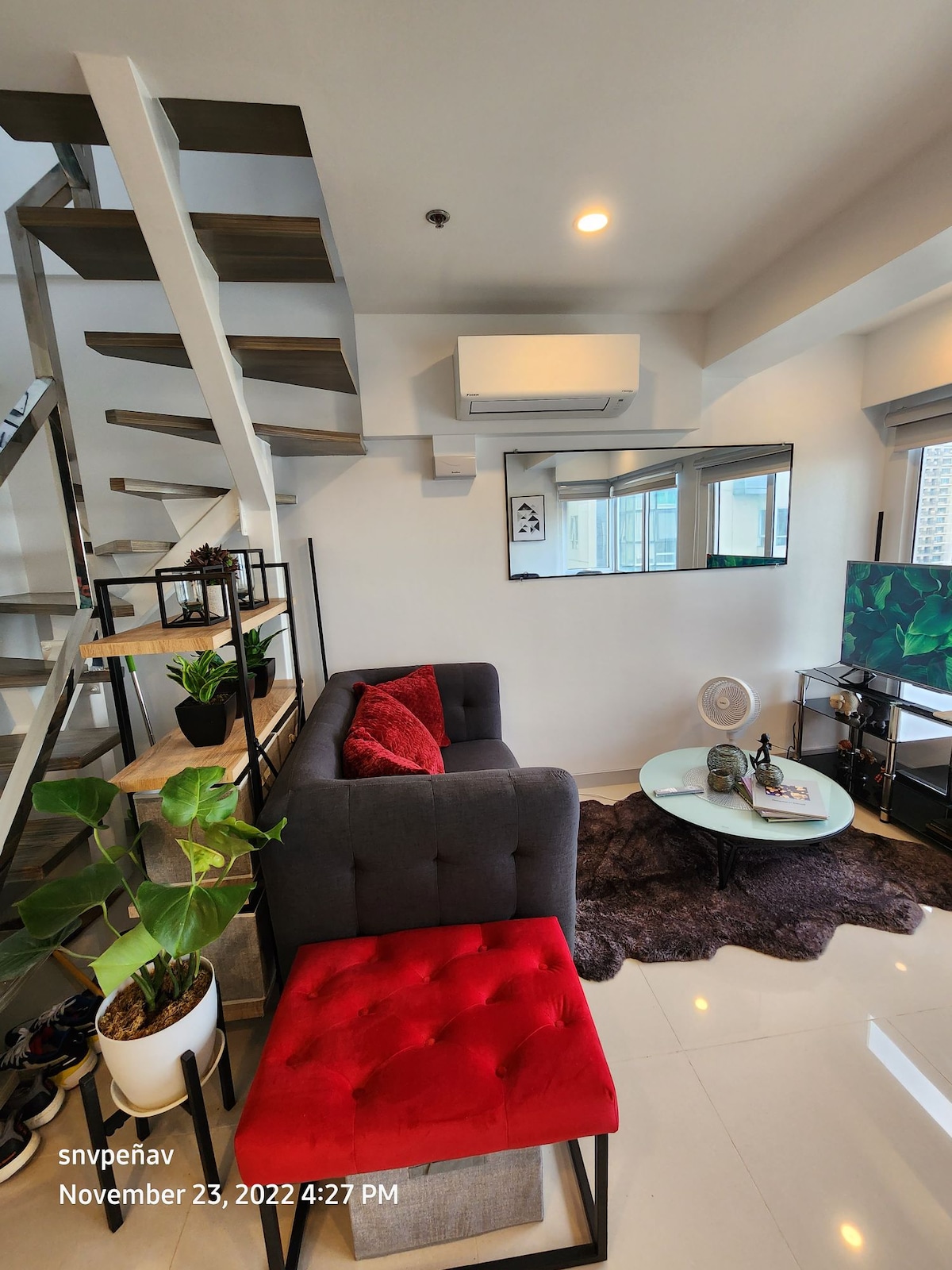 Slap af, og nyd de afslappede vibes i dette designerloft med industrielt tema, der ligger i hjertet af Mandaluyong City og Ortigas ● Højhastigheds-wi-fi med en 100 Mbps-forbindelse, der er perfekt til fjernarbejde ● 55-tommers smart-tv med Netflix og Amazon Prime til den fantastiske weekend, der er værd at binge ● Kun en kort gåafstand fra Edsa Shangri-La, SM Megamall, Estancia og Rockwell Business Centre ● Tilfreds din appetit fra mange nærliggende restauranter, barer, weekendnattemarkeder og madvogne